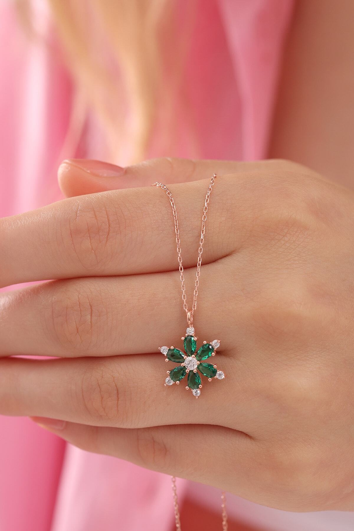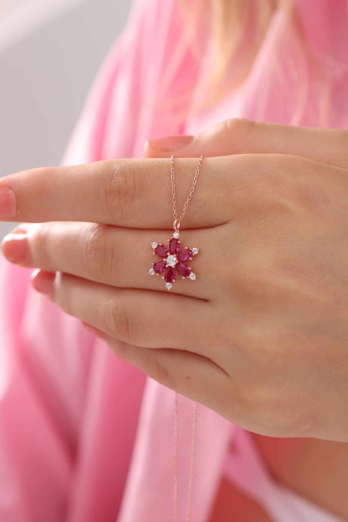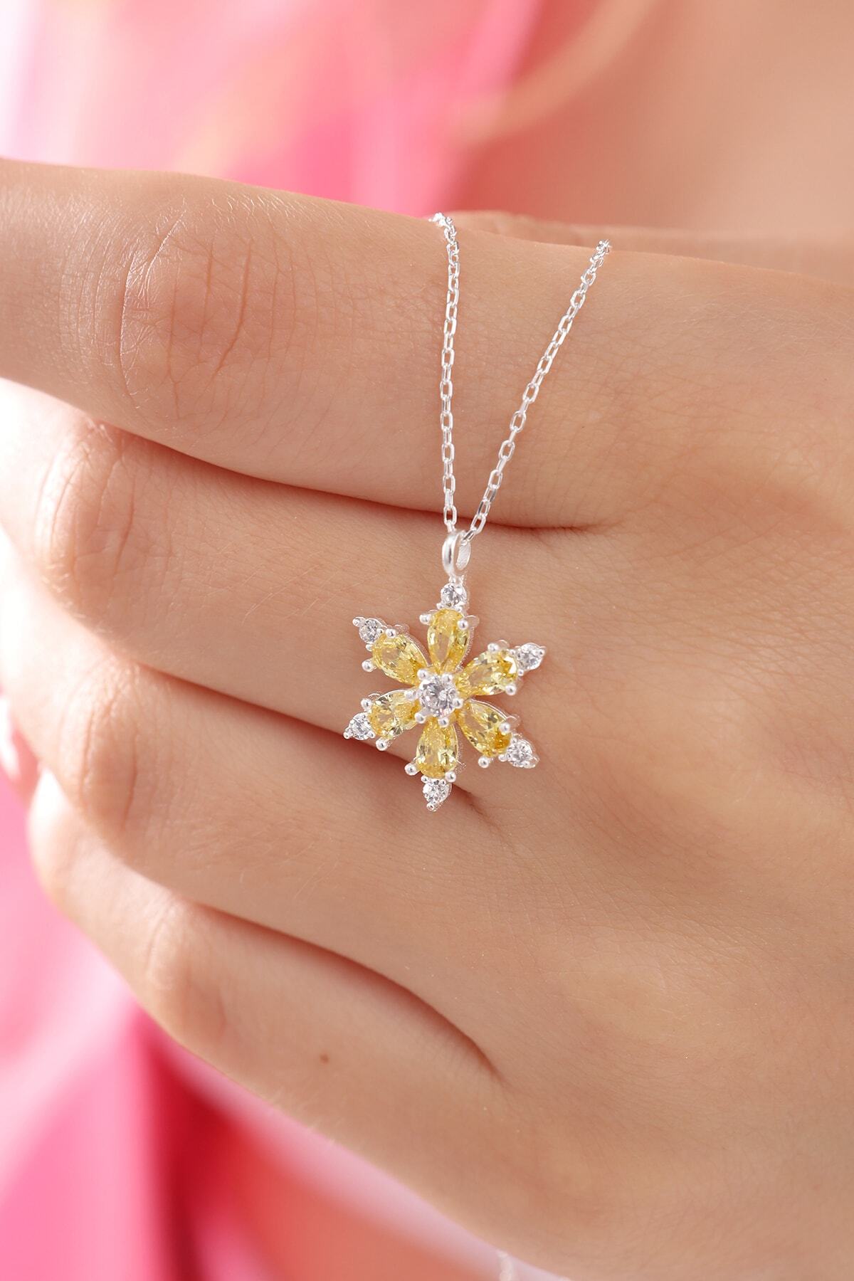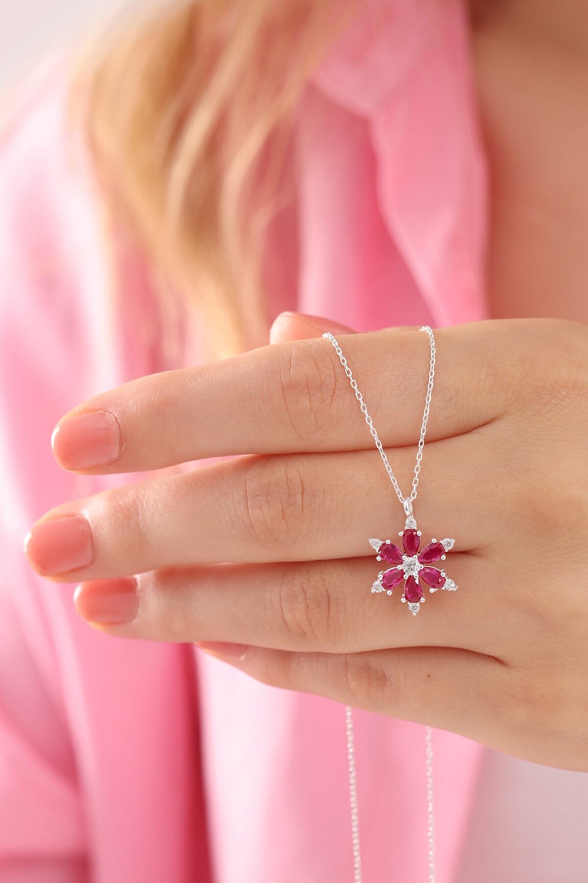 Ürün 925 Ayar Gümüş Zincirli Ametist Damla Taşlı Lotus Kamelya Çiçeği Kolye