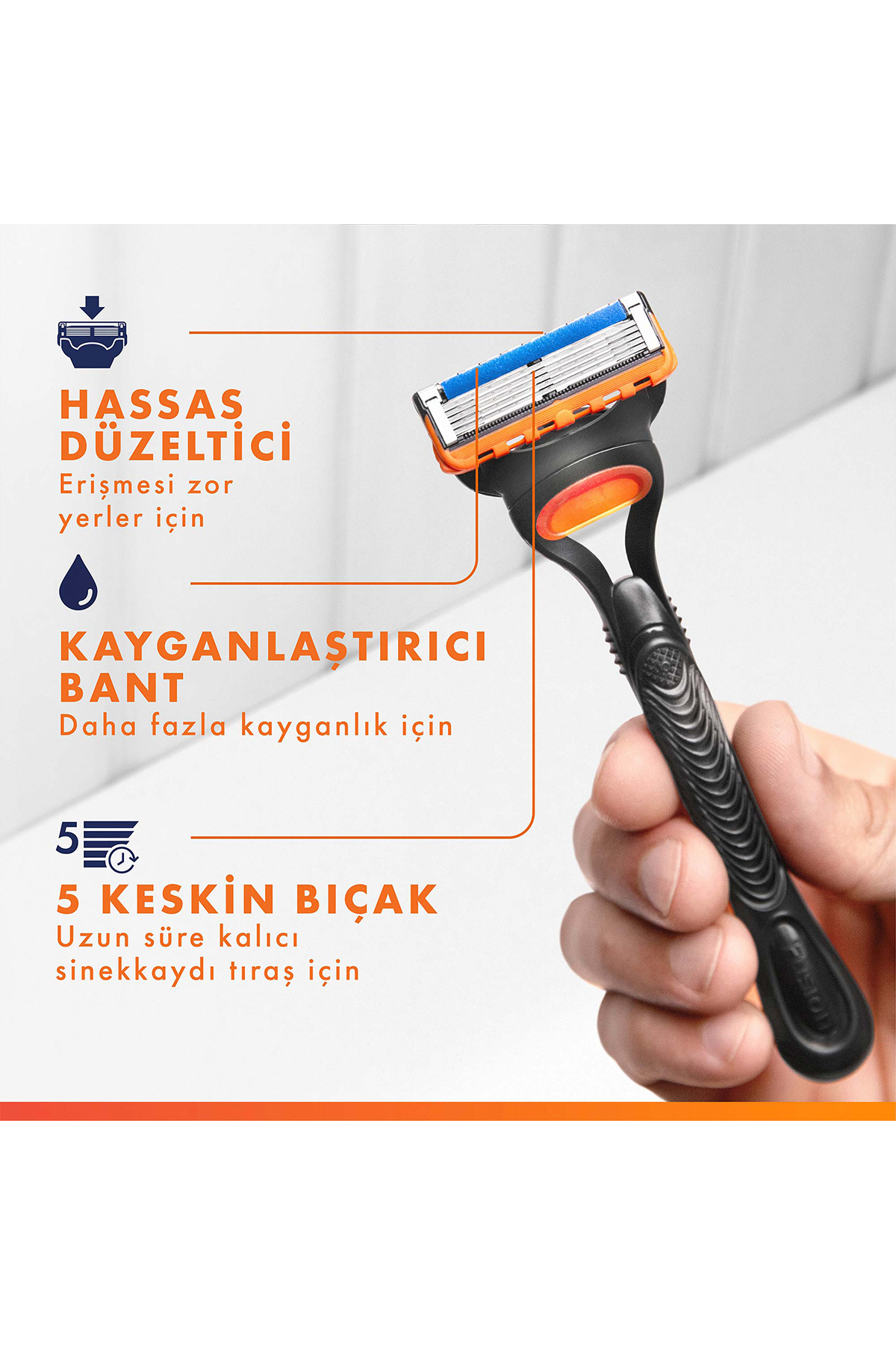 Gillette Fusion5 erkek tıraş makinesi sinekkaydı ve uzun süre kalıcı tıraş için 5 sürtünme önleyici bıçağa sahiptir.