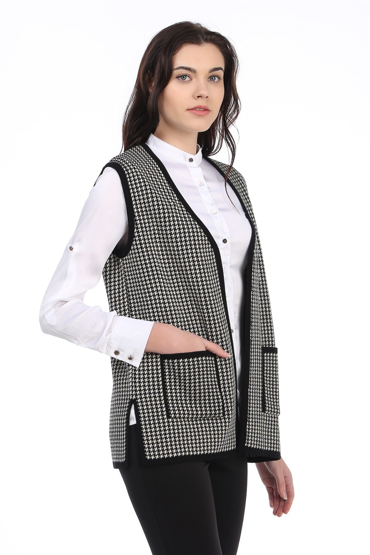 Doğru kombinlerle dilediğiniz yer ve zamanda kullanabilir ve bu şık yelek modeline dolabınızda yer verebilirsiniz.