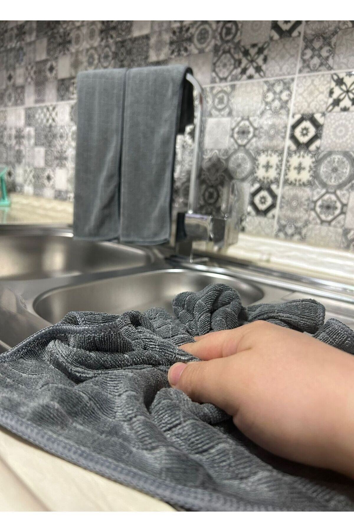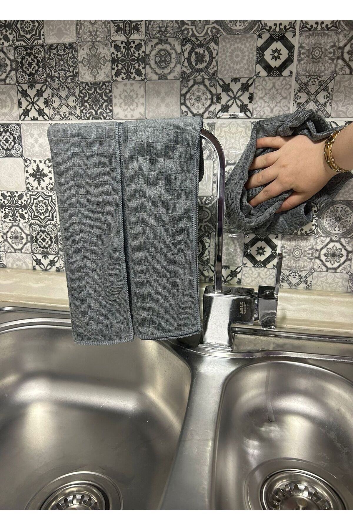 Mutfakta hijyen ve temizliği bir arada sunan sihirli mikrofiber kareli gri mutfak bezleri, leke tutmaz özelliği ile mutfakta pratik bir kullanım sağlar