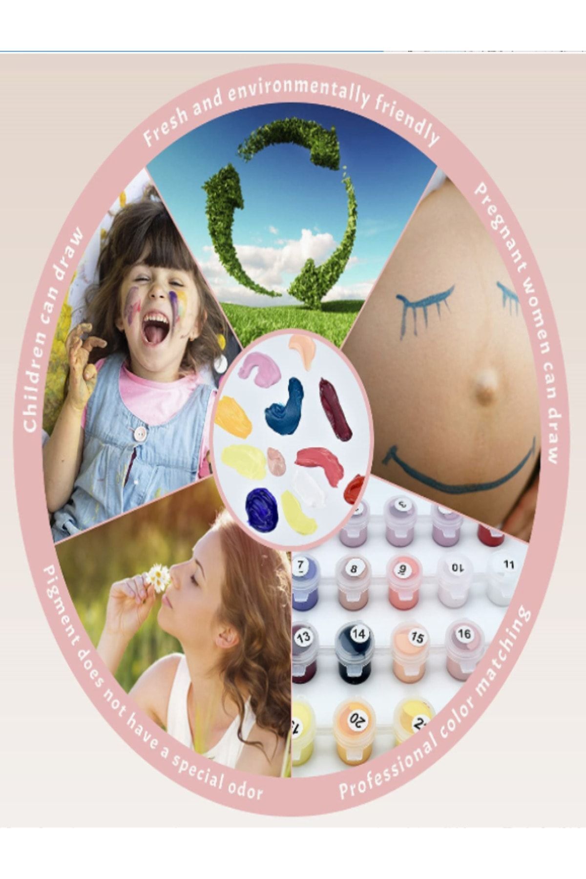 Açıklamalar: Numaralarla boyama seti, tuvalin üzerindeki numaralardan oluşan şablonu renk kodlarına uygun şekilde boyadığınızda, hiç resim bilginiz olmasa dahi harika tablolar yaratmanıza olanak sağlar.