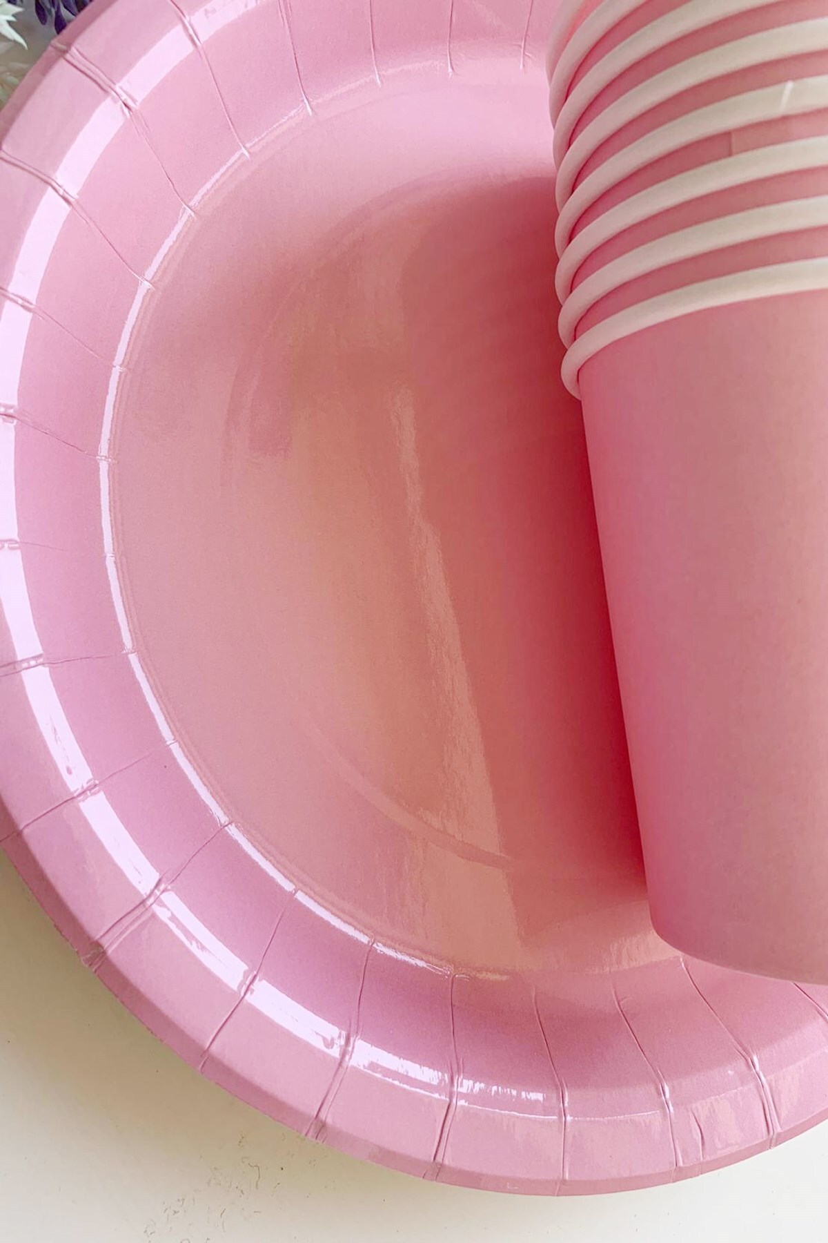 Pembe Makaron Pastel Karton Tabak Bardak Set 8 li Pakette