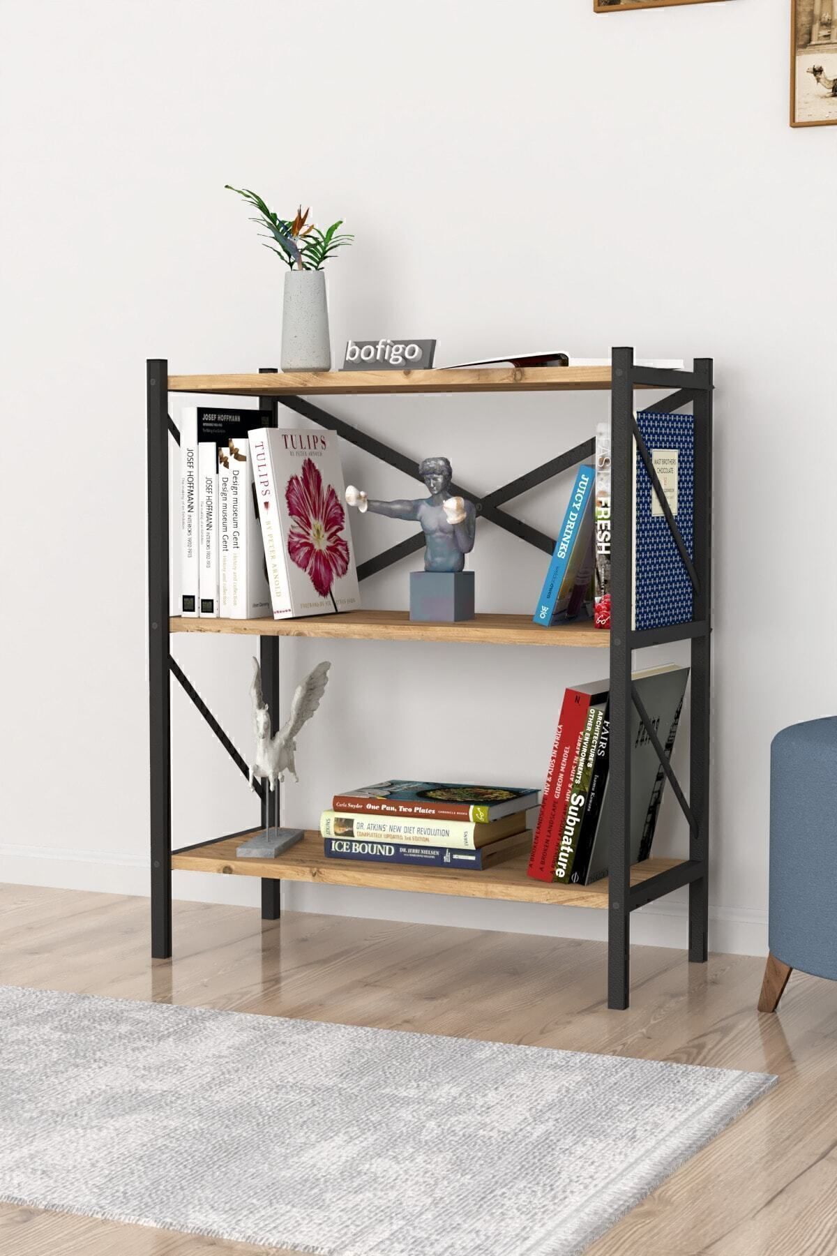 Bofigo Dekoratif 3 Raflı Kitaplık Metal Kitaplık Çam ?Bofigo 3 Raflı Kitaplık, özel kolisi içerisinde, demonte olarak sevk edilir.