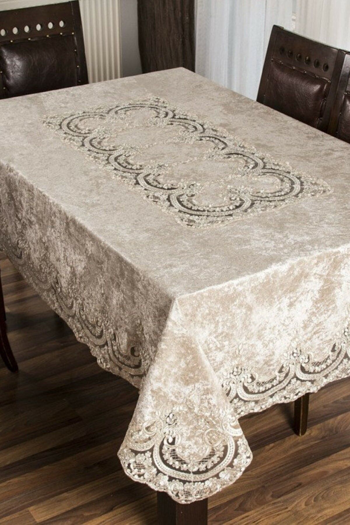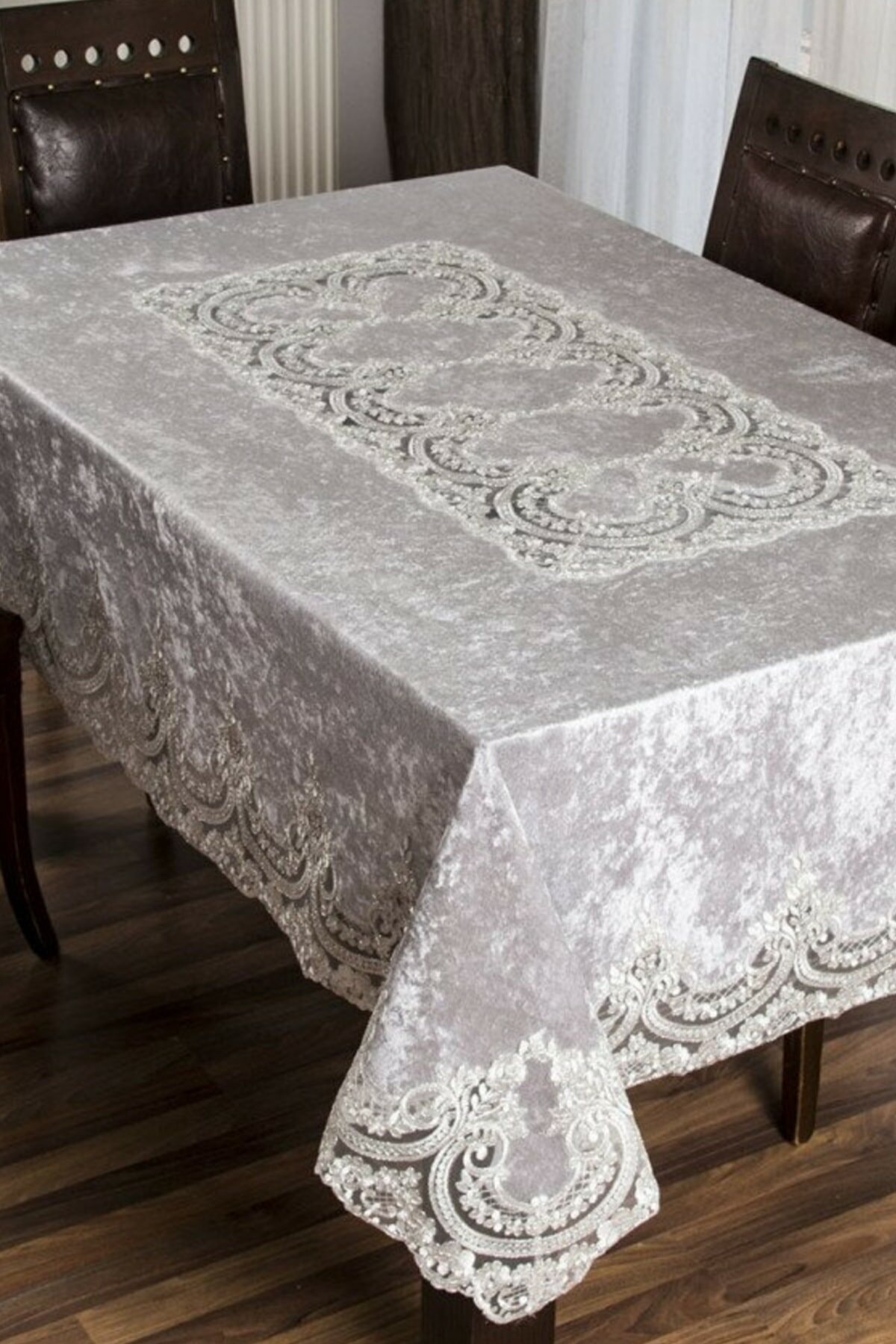 Geometrik desenleriyle modern ve şık bir görünüm sunan kadife masa örtüsü, mekanınıza estetik bir dokunuş katar