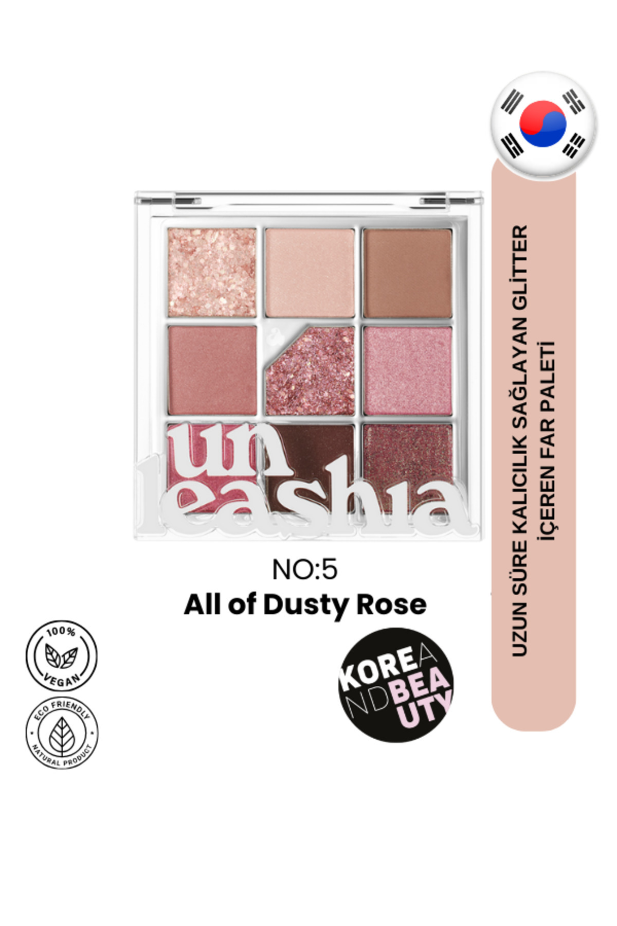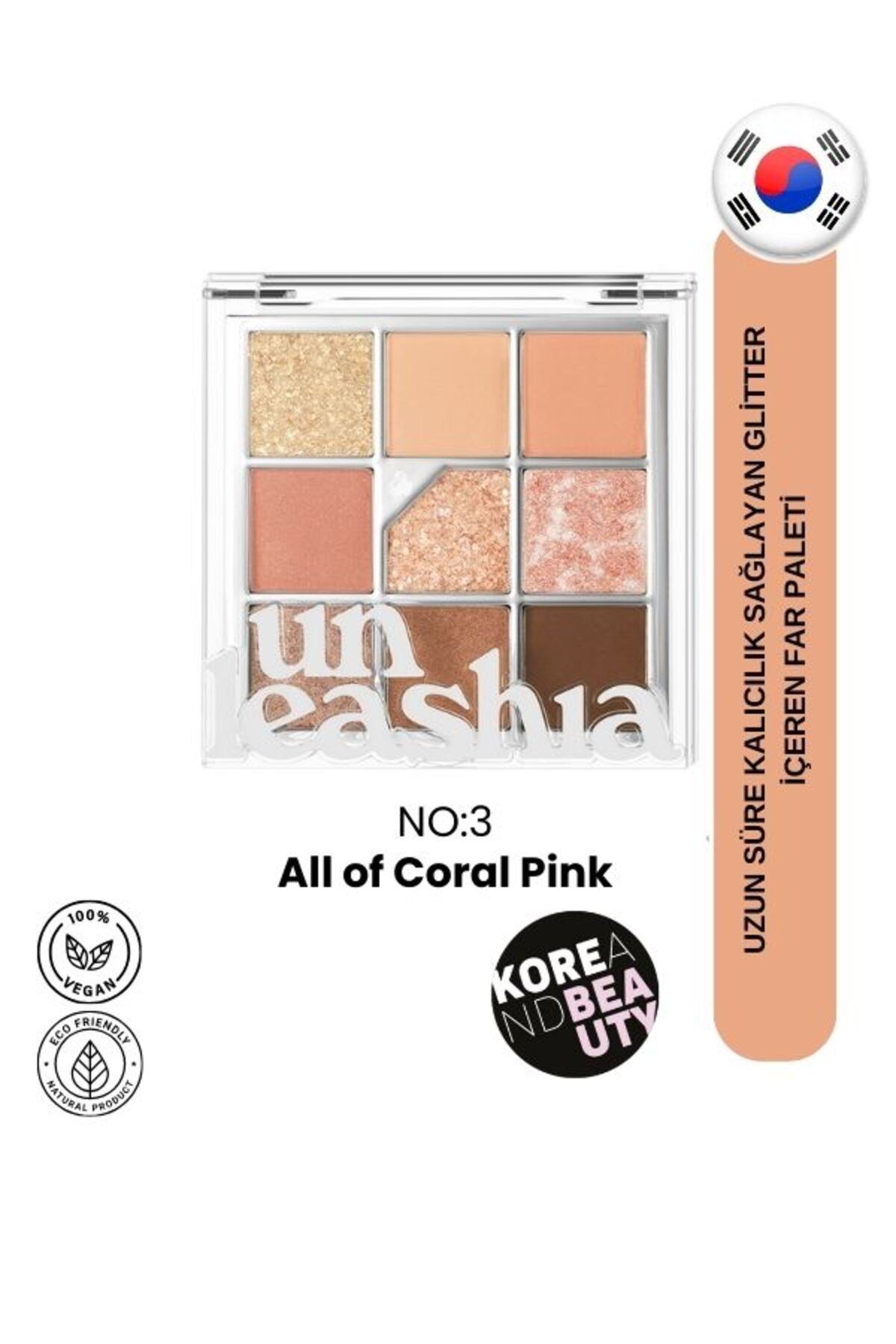Parıltılı, ışıltılı ve mat dokuz renkten oluşan, muhteşem tonlar içeren, vegan, preslenmiş göz farı paletleri koleksiyonu