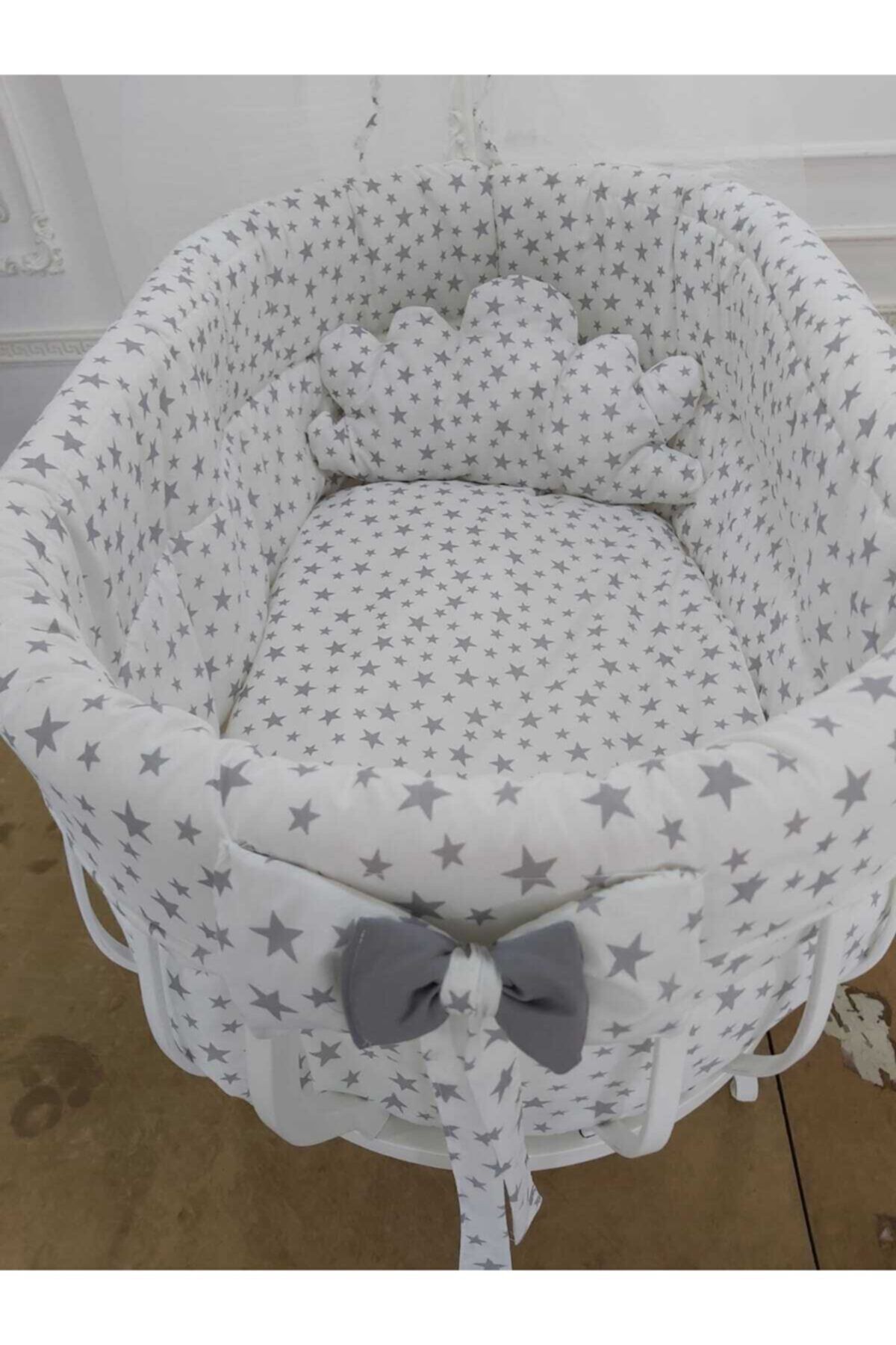 Çarşaf ve yastık dahil olmak üzere tam bir set halinde sunulan bu yan koruma, beşiğinizi tamamlar ve şık bir görünüm kazandırır