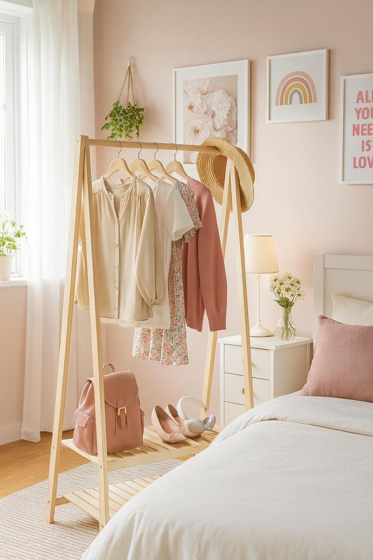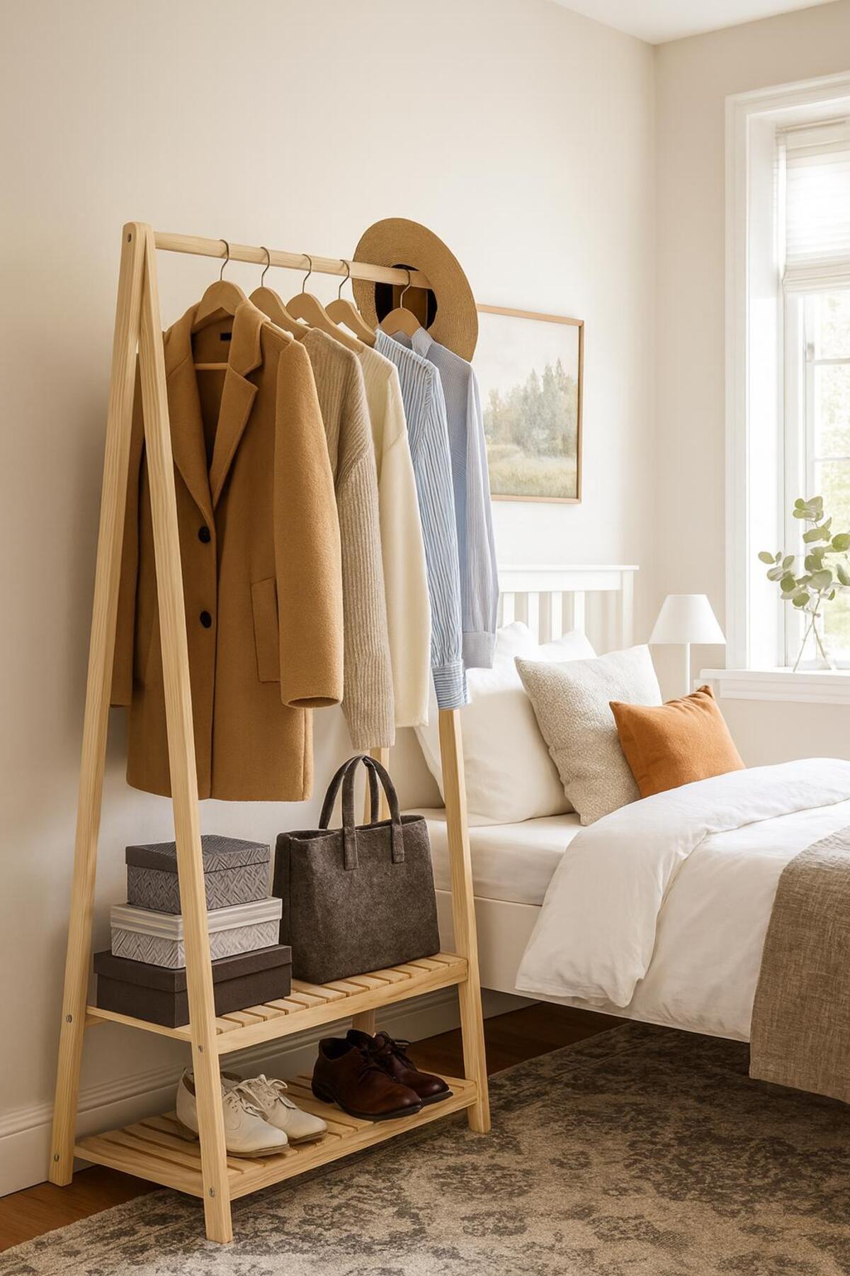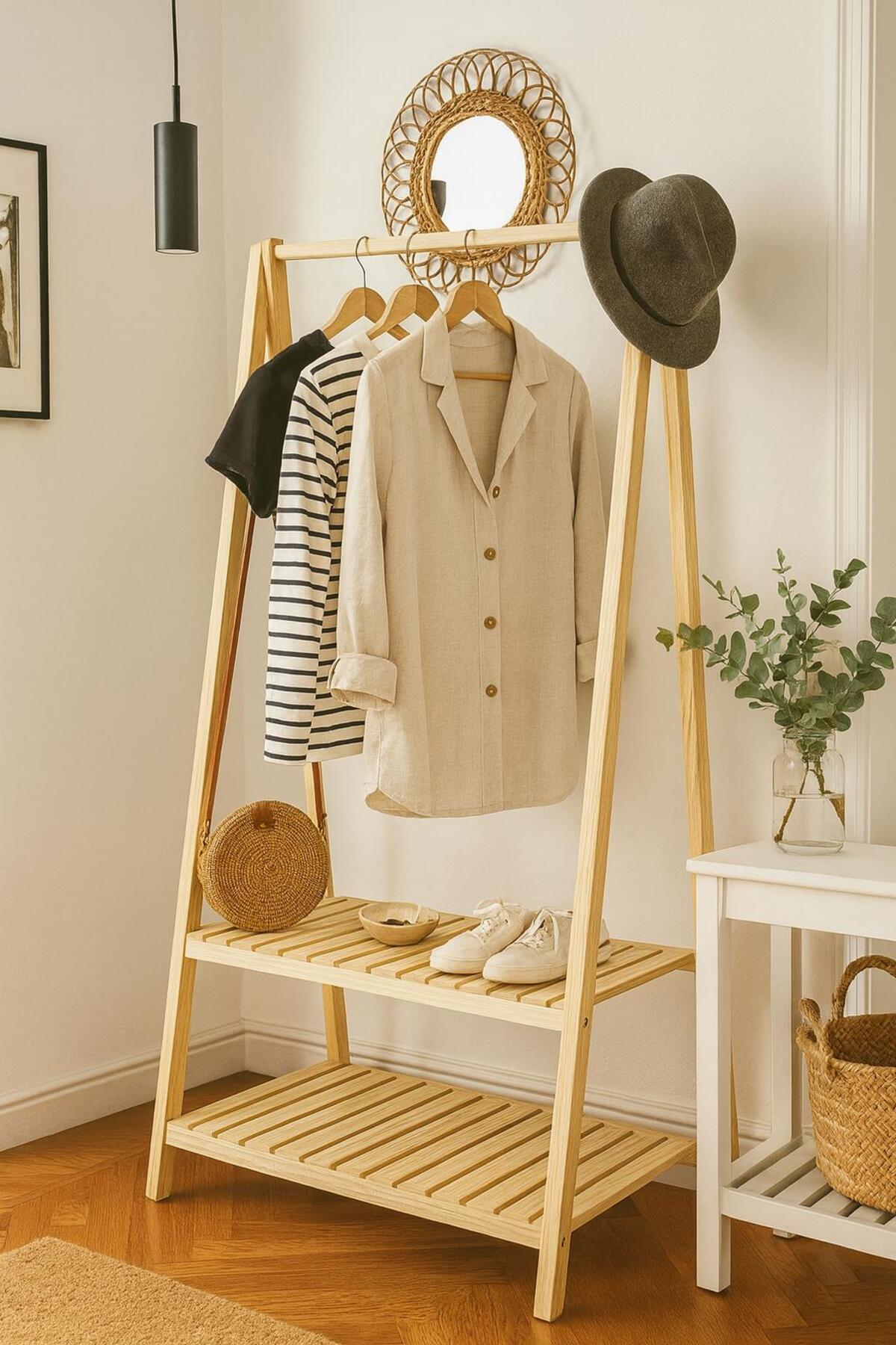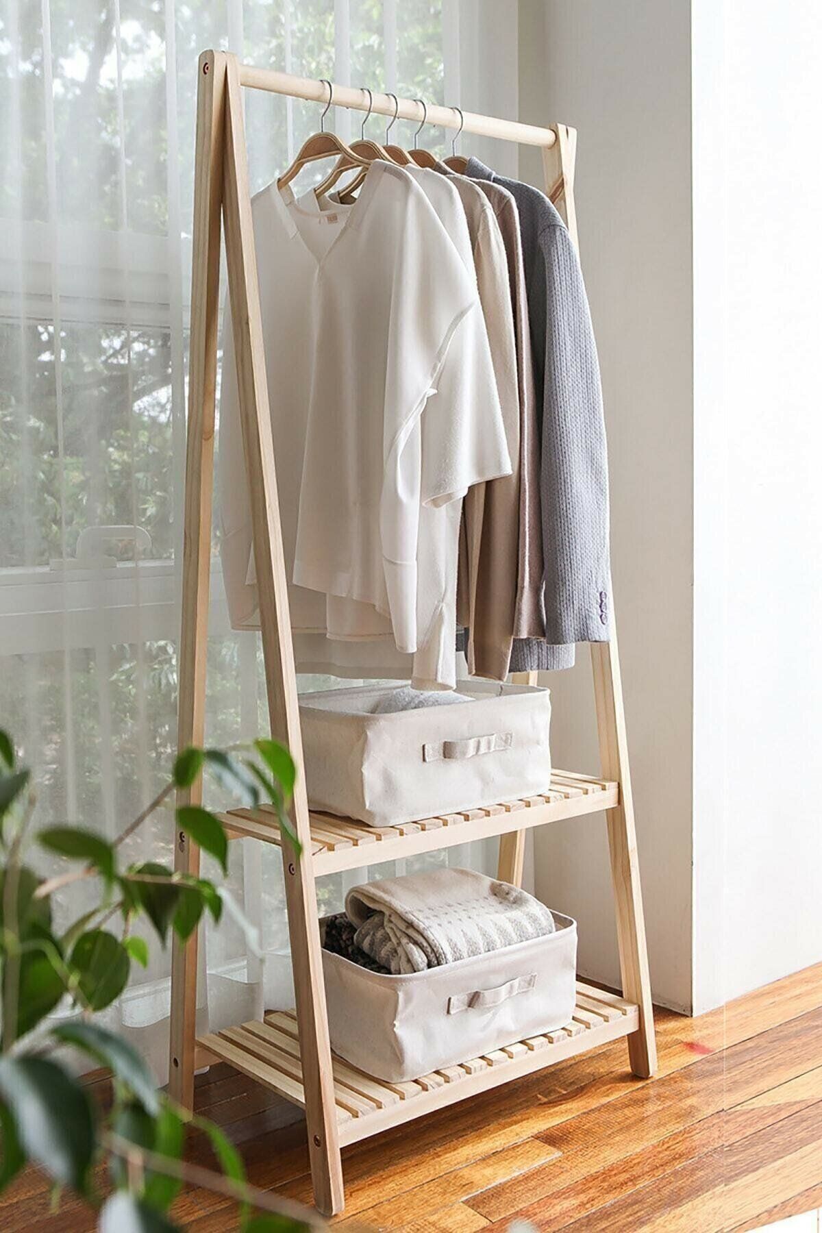 Doğal Ahşap Ayaklı Elbise Askılık Konfeksiyon Askılık Gardırop 148x66x38 Cm