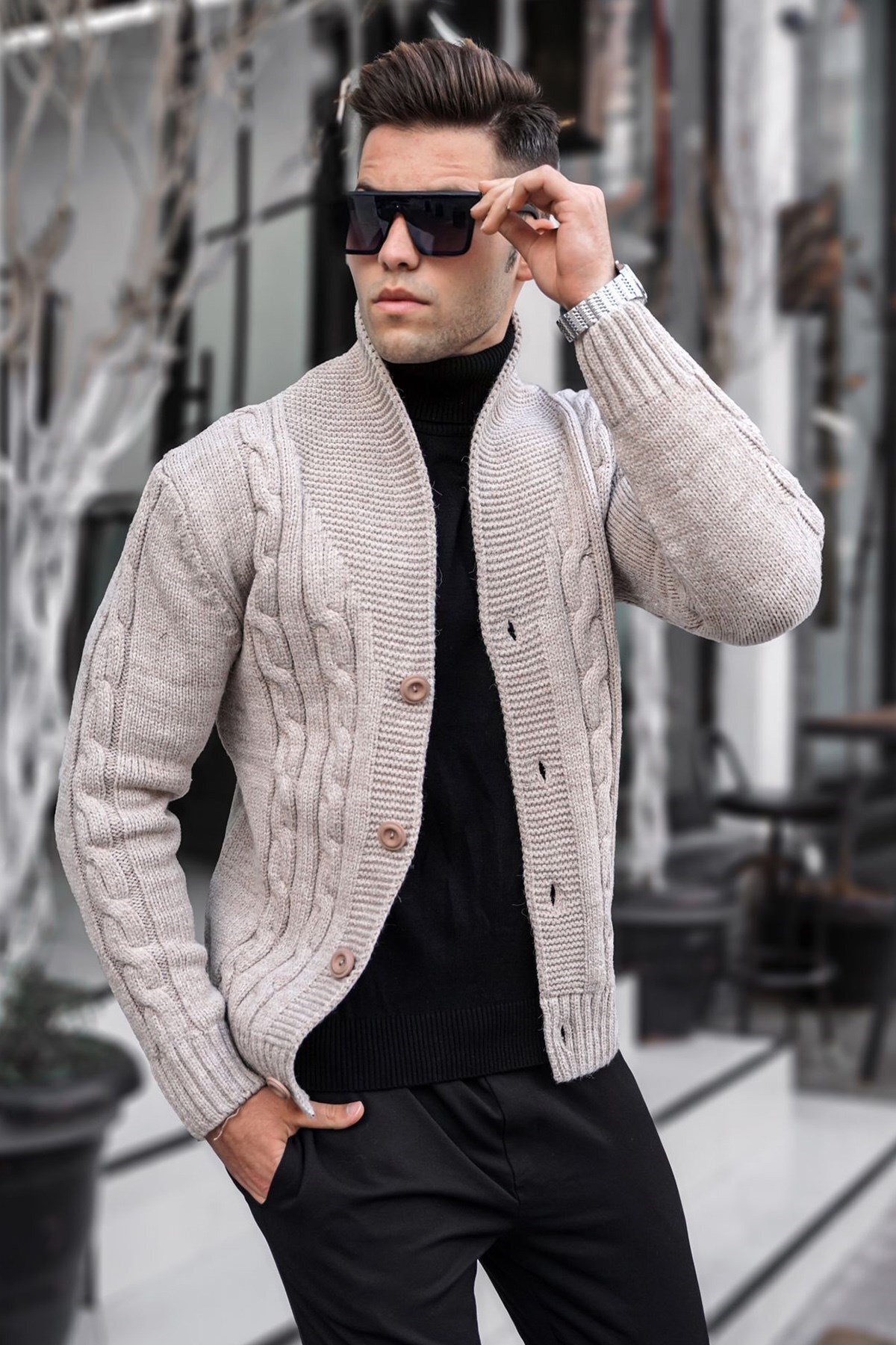 Düğmeli kapama şekli pratik kullanım imkanı sunarken, ceket yakası ile klasik bir hava katar