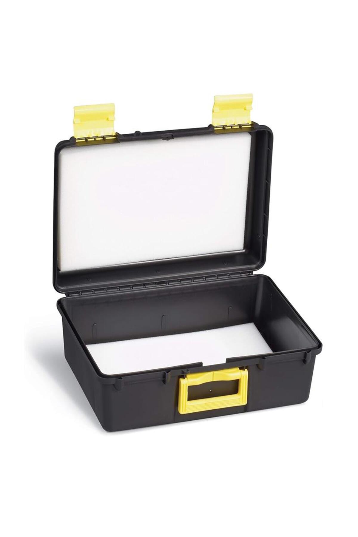Usta Plastik Takım Çantası Ürün Ölçüsü • En: 330 mm • Boy: 440 mm • Yükseklik: 190 mm Ürün Özellikleri • Malzeme: Plastik • Aletler dahil değildir, Çanta tek adettir.
