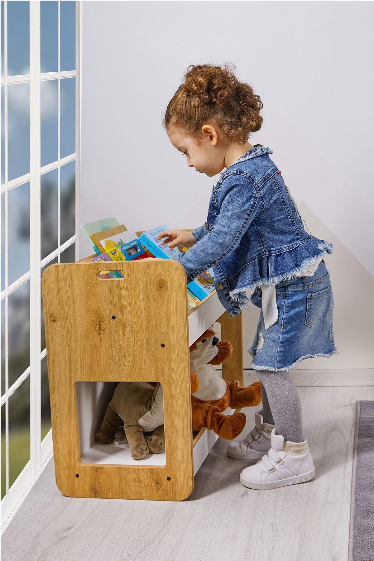 erken yaşta oyuncak toplama ve kitaplarını yerleştirme alışkanlığı kazanacağı ürünümüz, üst kısmı kitaplık alt kısmı oyuncak toplama işlevi olacak şekilde tasarlanmıştır. 0-4 yaş aralığındaki çocuklar için 12 mm. Mdf Lam malzeme kullanılarak üretilmiştir. Kullanılan ahşap E1 standardındadır. Kutu içeriğinde 1 adet oyuncak toplama/kitaplık vardır. Ürün boyasızdır. Kimyasal bir madde kullanılmamıştır. Sağlığa zararı yoktur. Tüm kenarları yuvarlatılmış olup keskin bir kenarı bulunmamaktadır. Kolay kurulum montaj şeması ile gönderim sağlanır. Demontedir, kurulum müşteriye aittir. OYUN EVİ (3-6 Yaş): 12 mm. Mdf Lam malzemeden üretilmiş oyun evi, yanlardaki ve çatıdaki kumaş örtüleri ile birlikte gönderilir. Kullanılan ahşap E1 standardındadır. Mdf Lam kaplamalı malzeme kolayca silinebilir. Birbirlerine kenetli geçecek şekilde montajlanmaktadır. Kullanılan kumaş rahatça oyun evinden çıkarılabilir ve yıkanabilir özelliktedir. Renk ve desen atması yaşanmaz. Üzerindeki cırtlar suya dayanıklıdır. Kumaşın montajı, kenardaki kumaşa dikilen cırtların birbirine yapışmasıyla yapılır. Demontedir, kurulum müşteriye aittir. Kolay kurulum kılavuzu ile birlikte gönderilir. Tüm kenarları yuvarlatılmış olup keskin bir kenarı yoktur. Sağlığa zararlı bir madde kullanılmamıştır. * Tasarım tescili vardır. 2020 / 03345