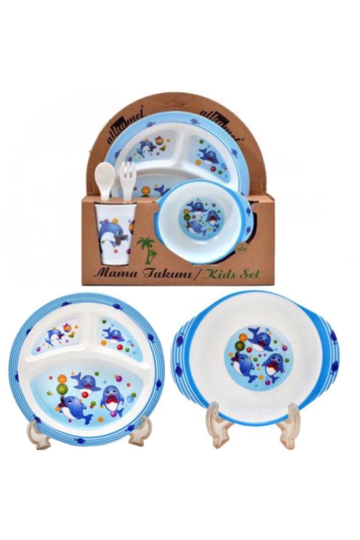 100% yerli üretim 1 adet 3 bölmeli tabak(İç Çap 18cm, Derinlik 2cm), 1 adet kase(İç Çap 13cm, Derinlik 4.5cm), 1 adet bardak, 1 adet çatal, 1 adet kaşık.