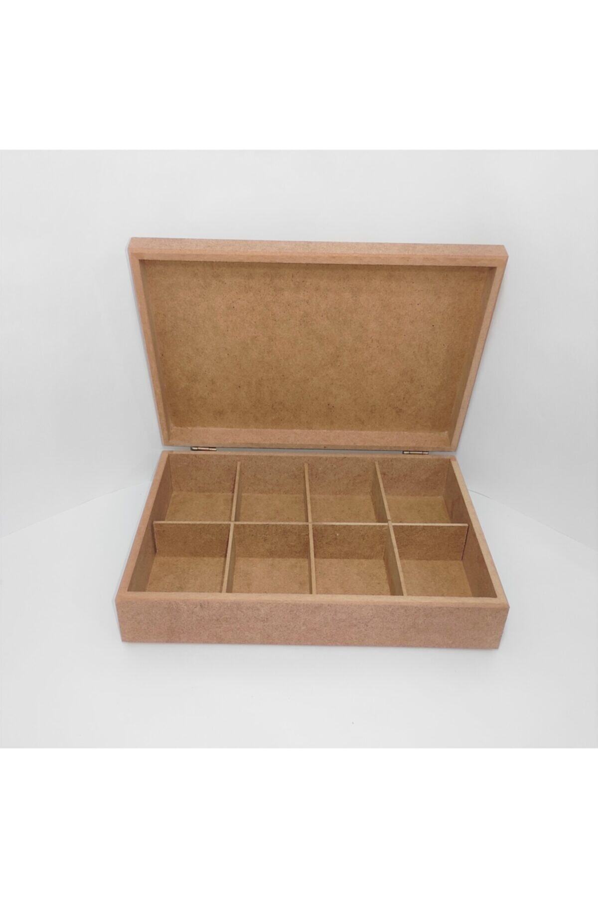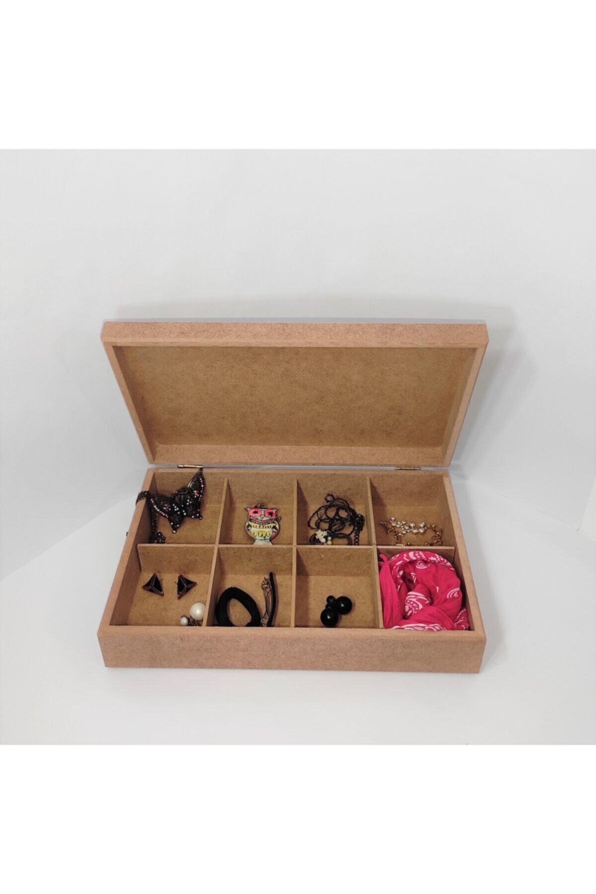 Ahşap Boyanabilir Dikdörtgen 8 Bölmeli Kutu Takı ve Depolama Kutusu