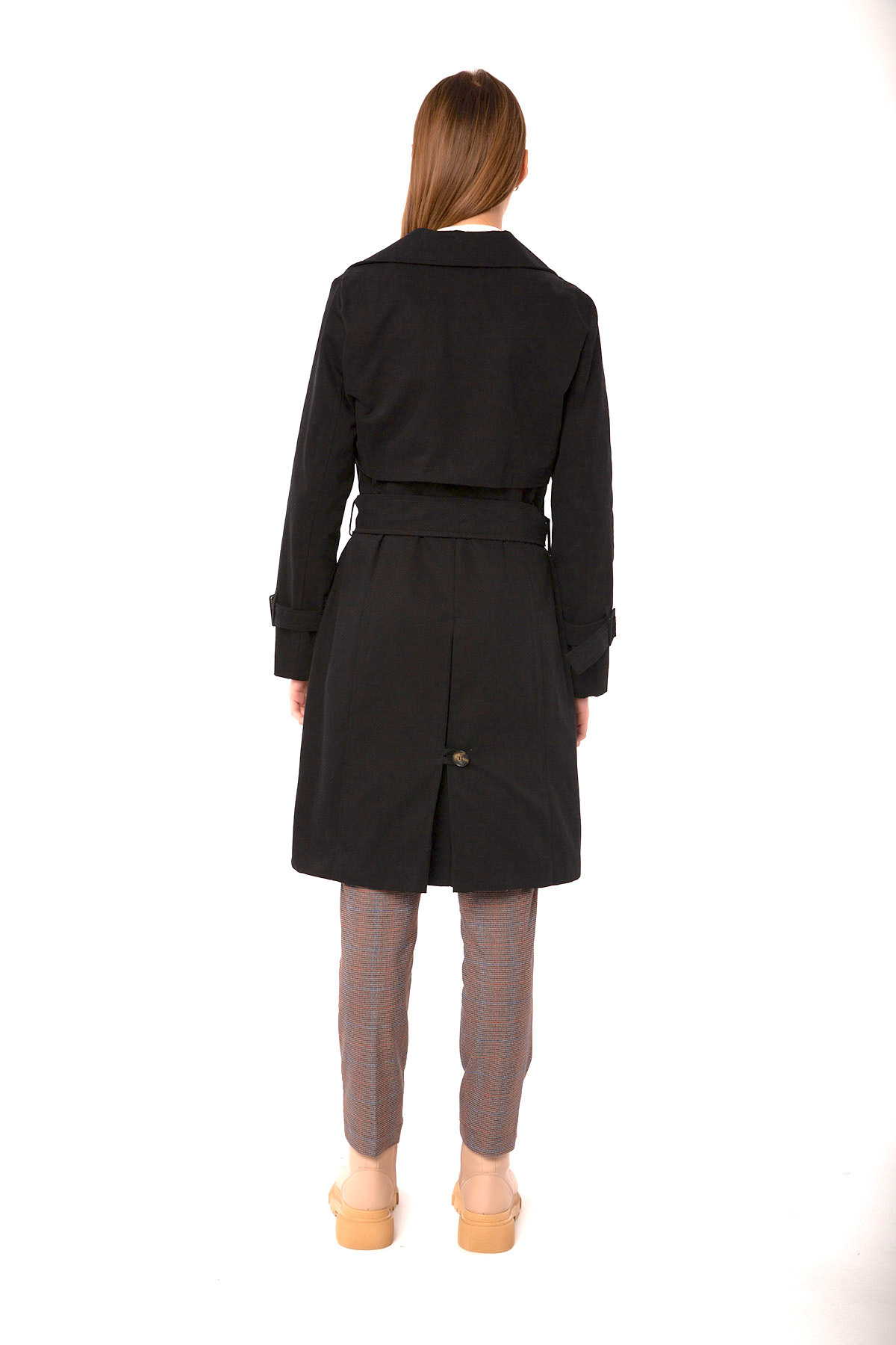 Premium kalite klasik kruvaze pamuk gabardin midi boy astarlı kemerli trençkot