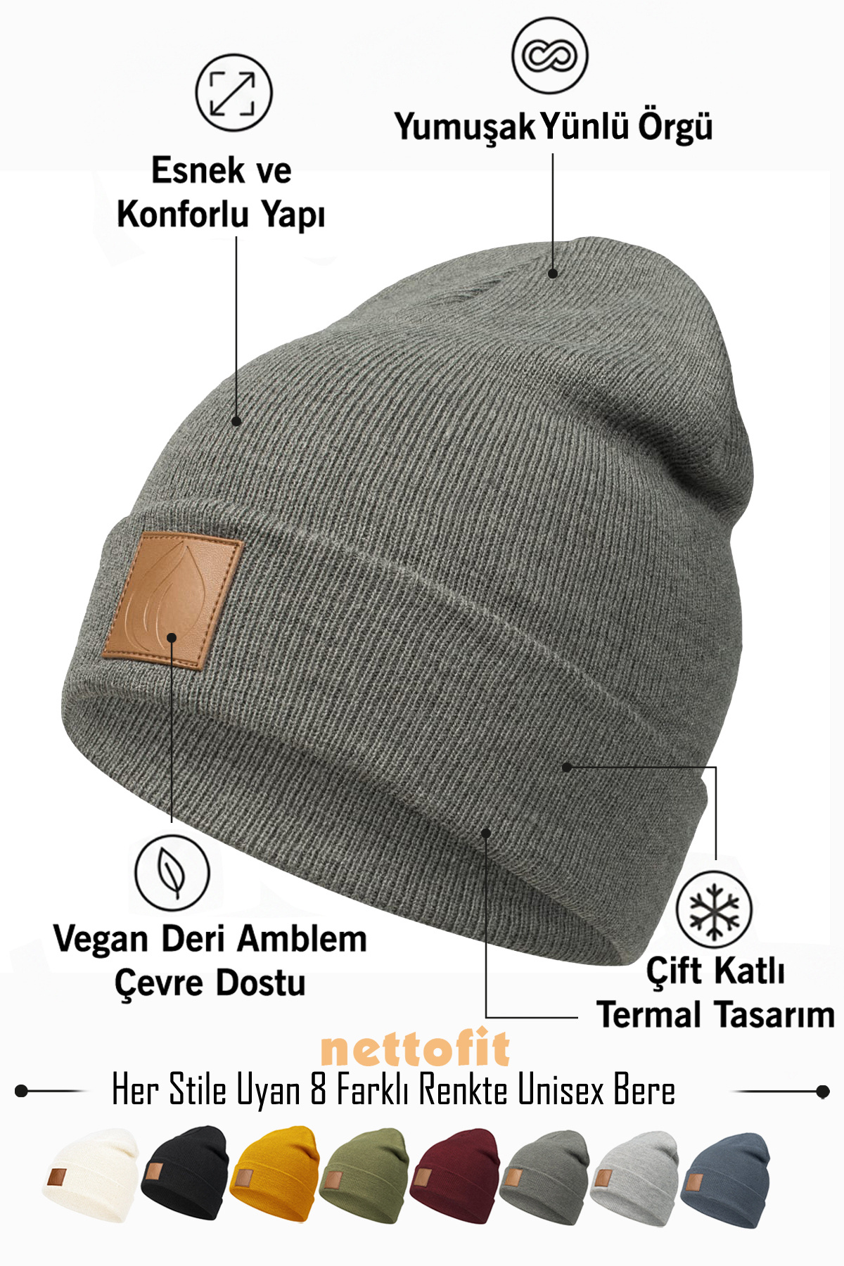 Her yaştan erkek ve kadının kullanımına uygun, şık ve rahat bir aksesuar olan kışlık deri etiket detaylı bere.