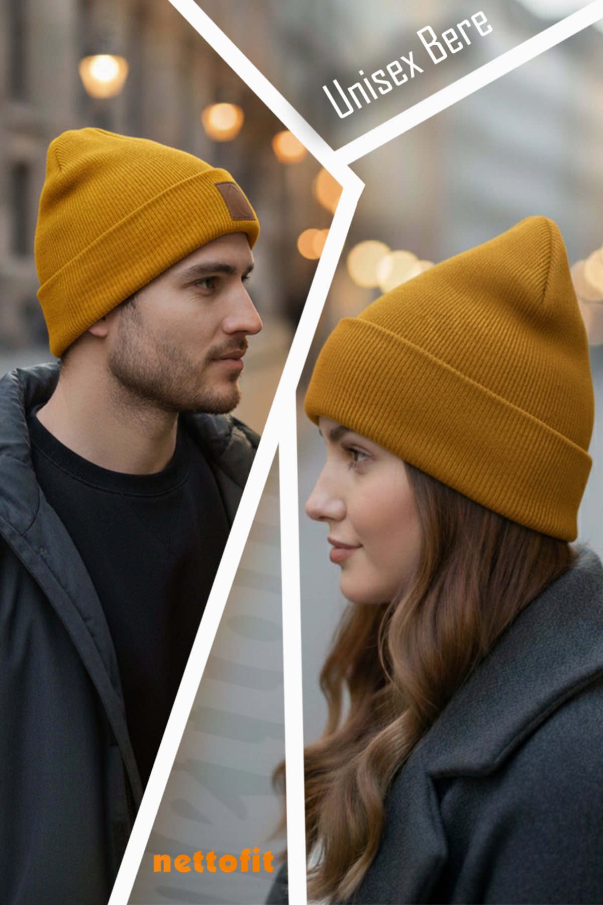 Her yaştan erkek ve kadının kullanımına uygun, şık ve rahat bir aksesuar olan kışlık deri etiket detaylı bere.