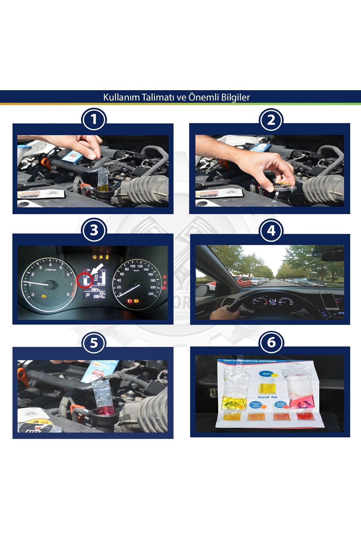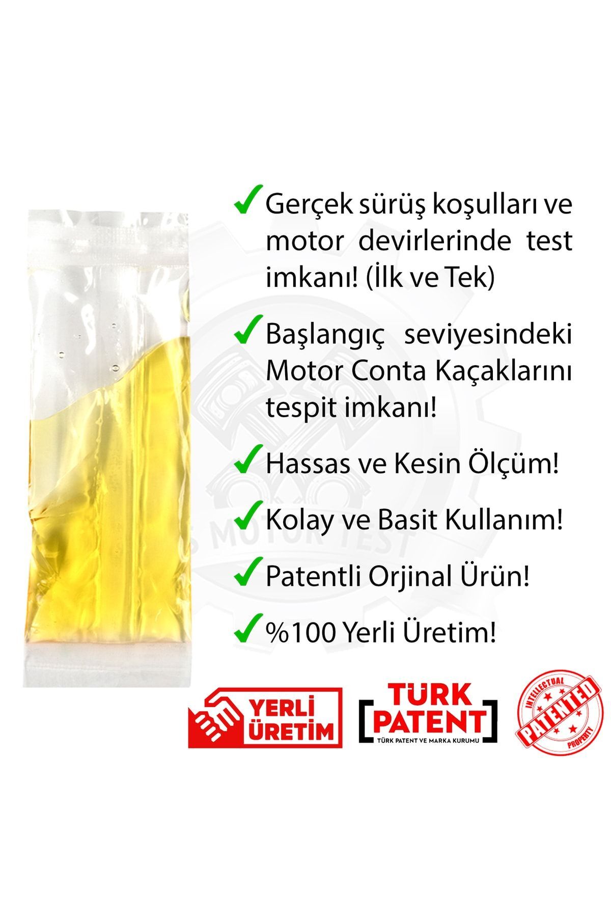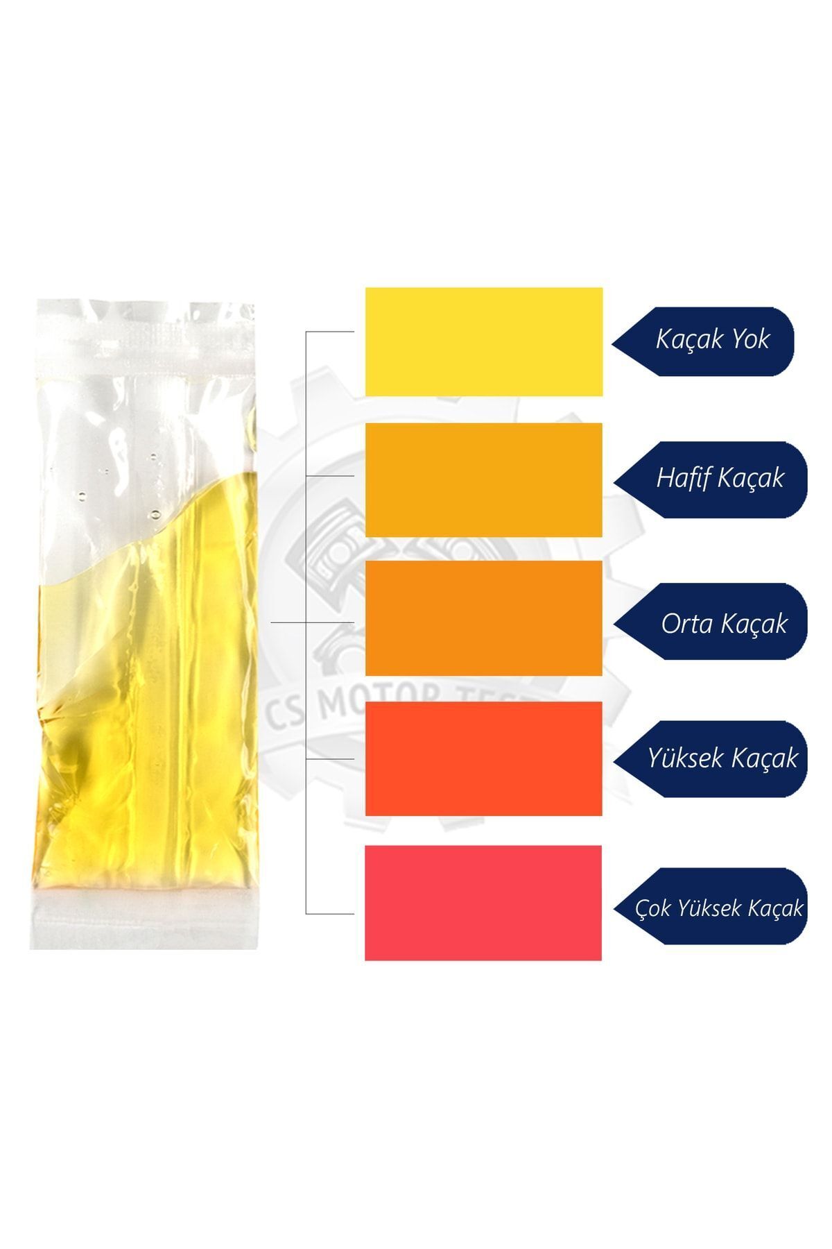 •Testin içerisindeki sıvının rengi sarı ise motorunuz sağlam , turuncu ise motorunuz da orta düzeyde kaçak , kırmızı veya pembe ise yüksek düzeyde yanma odası kaçağı var demektir.