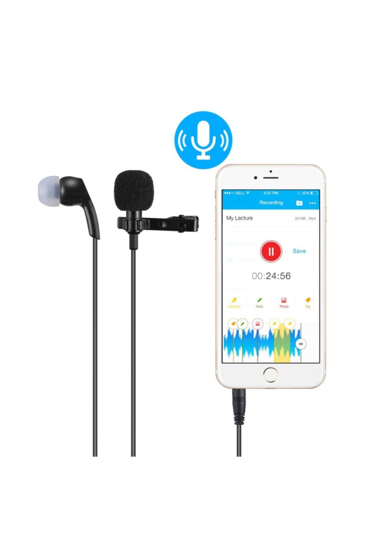 Kulaklıklı Yaka Mikrofonu Telefon Bilgisayar Uyumlu Aux Girişli Siyah
