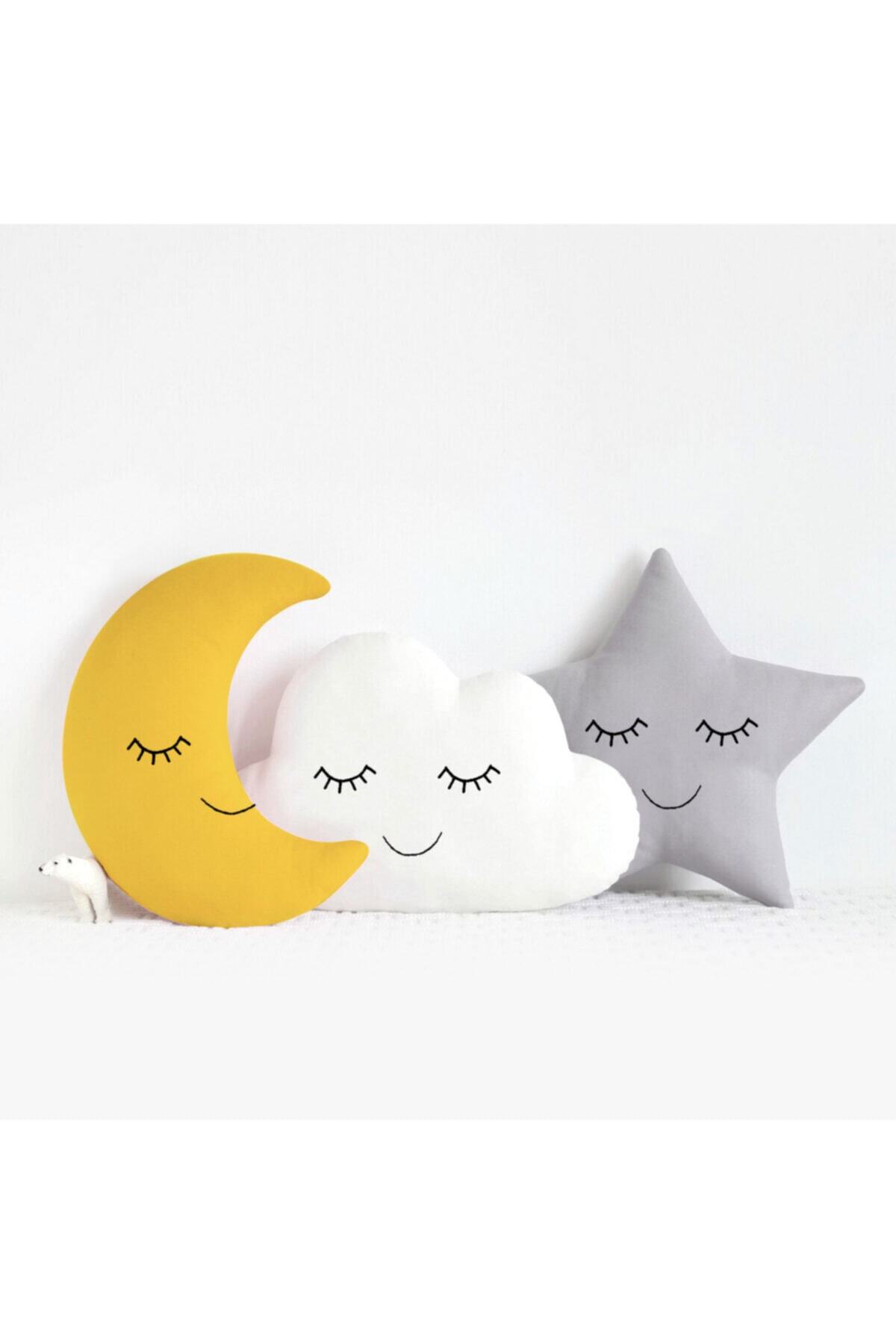 Bebeklerin ve çocukların hayal dünyasını genişleten ay, yıldız ve bulut şeklindeki süs yastıkları, evrensel dilde tasarlanmıştır