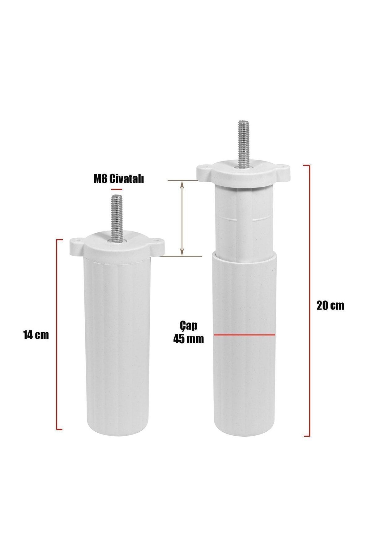 Mobilya Kanepe Baza Koltuk Destek Ayağı M8 Civata Ayarlı Beyaz Ayak 14 cm