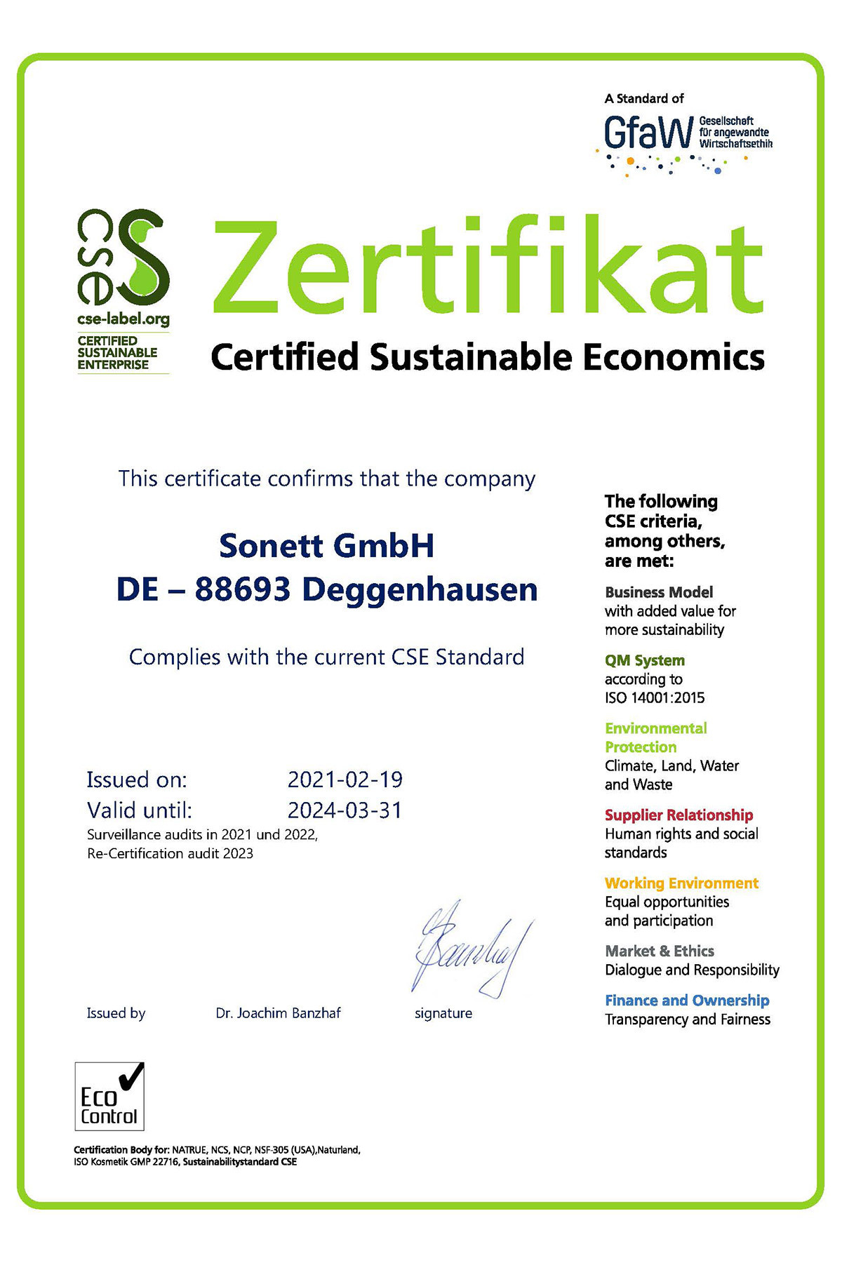 NCP (Nature Care Product) ve CSE Ekolojik Sertifikalı
