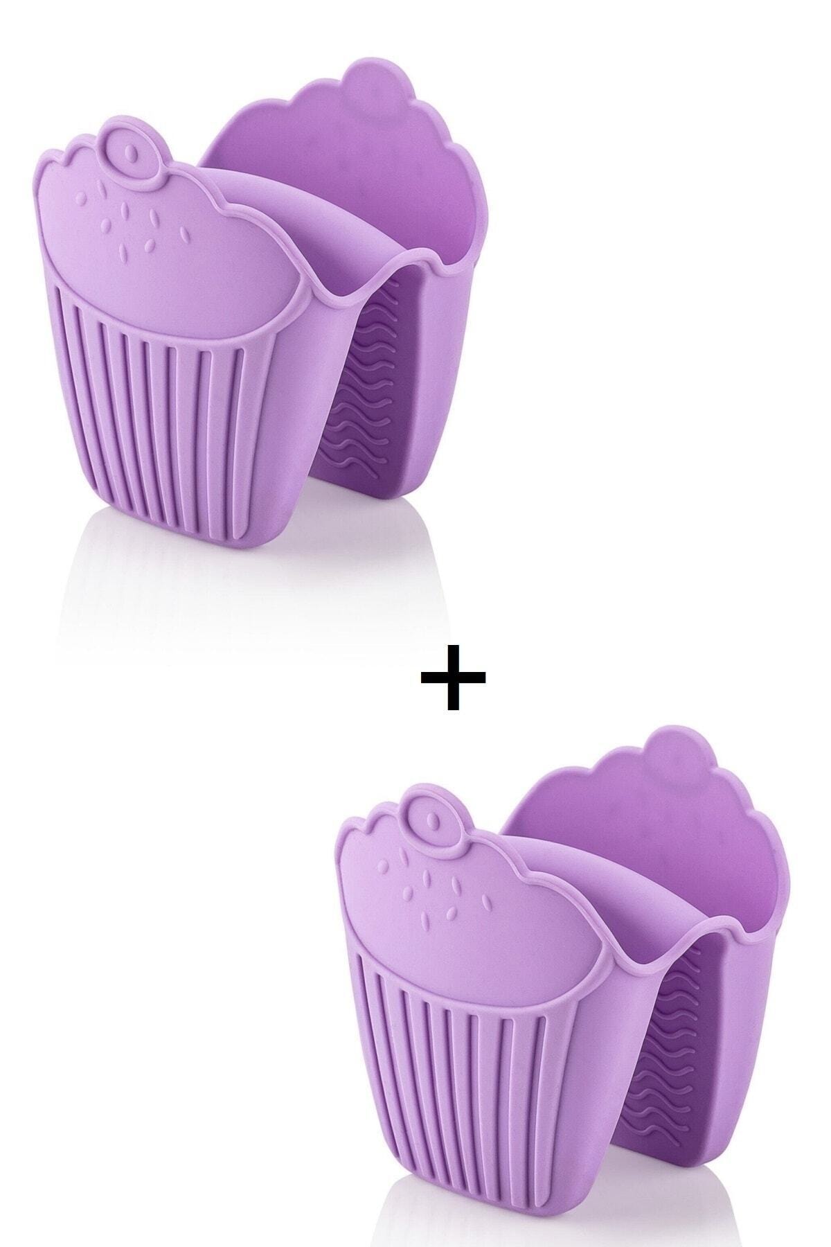 2 Adet % 100 Silikon Fırın Eldiveni Tutucu Mikrodalga Fırın Tencere Tepsi Tutmaç Seti Mor