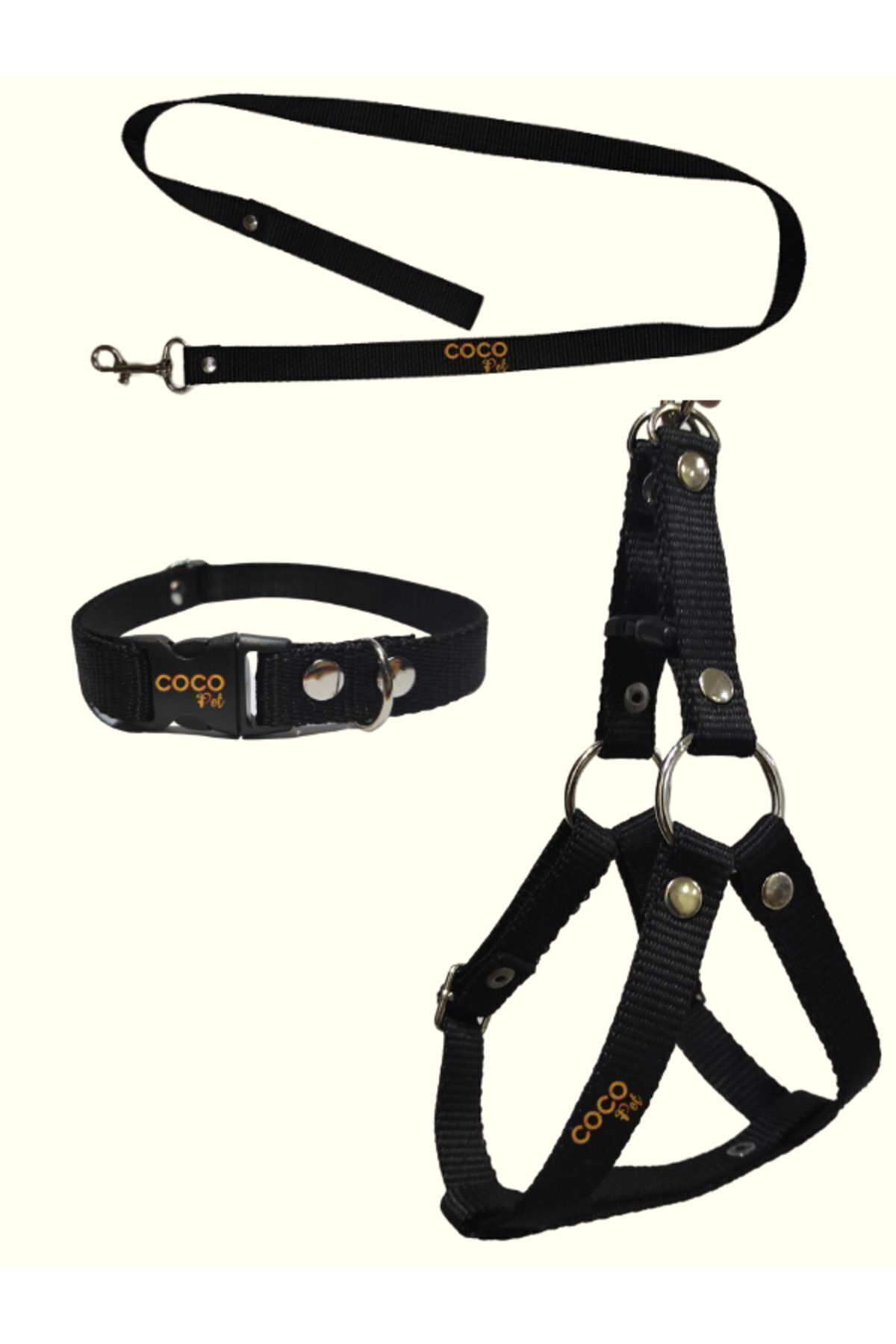 Köpek Göğüs Tasması Gezdirme Seti Small Siyah Sarı