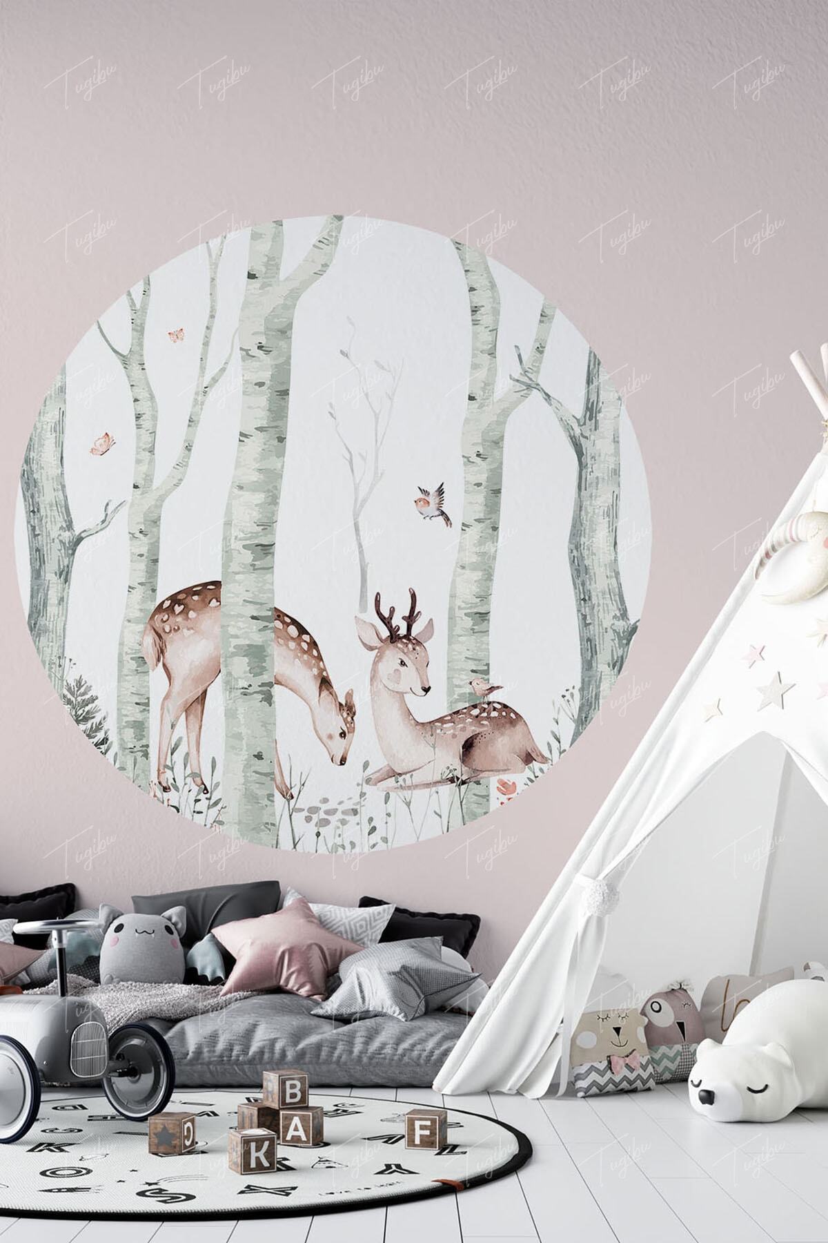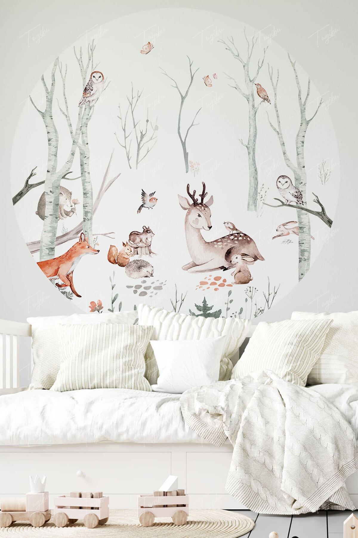 Orman temalı sticker, doğa sever çocukların odalarına doğal bir dokunuş katar ve onlara huzurlu bir uyku ortamı sunar