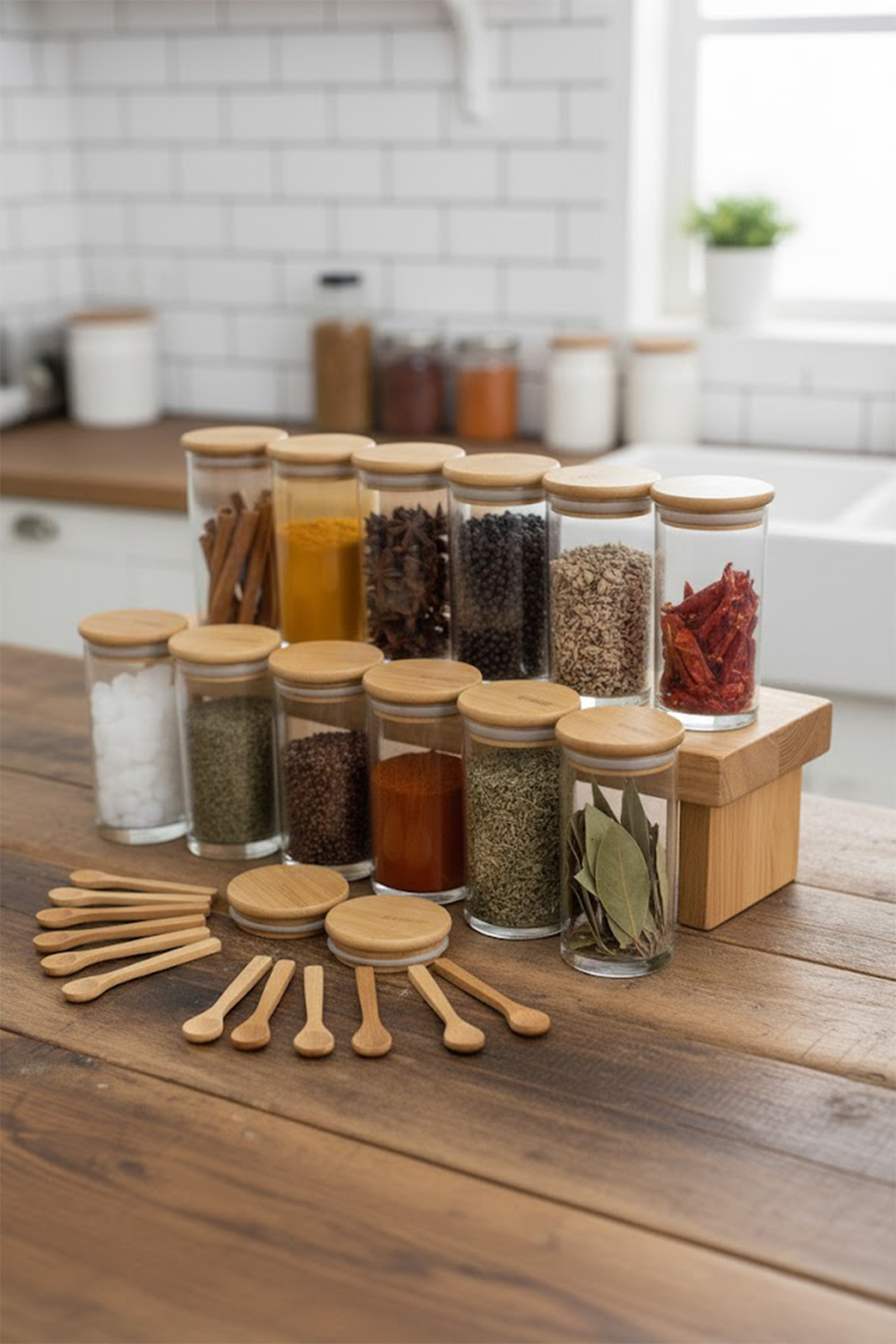 tezgahınızda fazla yer kaplamadan baharatlarınızı düzenli bir şekilde saklamanızı mümkün kılar