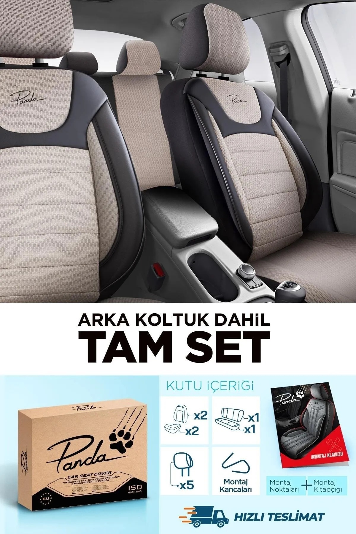 Paket İçeriği: 2 Adet Ön Koltuk Sırtlık Kılıfı + 2 Adet Ön Koltuk Oturak Kılıfı + 1 Adet Arka Koltuk Sırtlık Kılıfı + 1 Adet Arka Koltuk Oturak Kılıfı +5 Adet Kafalık Kılıfı + 1 Paket Montaj Kancası + Montaj ve kullanım kılavuzu içeren özel kitapçık