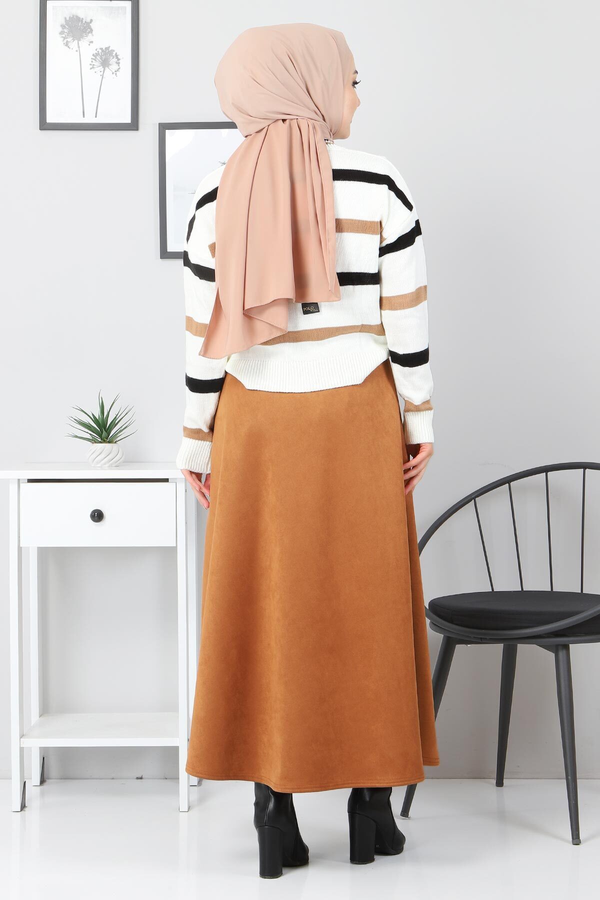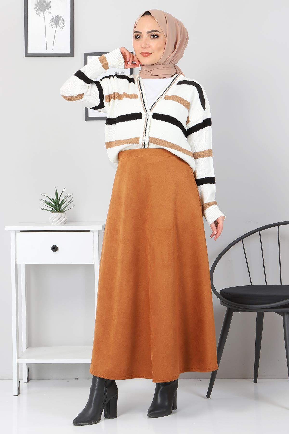 Süet Mevlana Etek TSD0036 Taba Özellikleri Kumaş Özelliği : Süet kumaştan üretilmiştir.