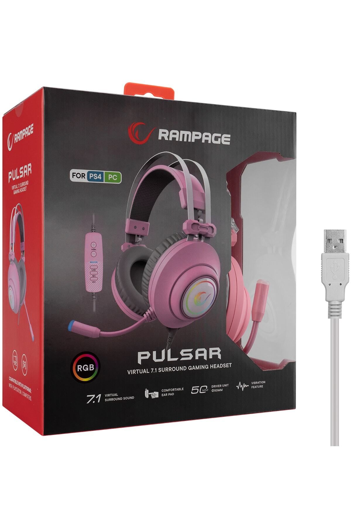 Rm-k1 Pulsar Pembe Usb 7.1 Surround Titreşim Rgb Işık Efektli Gaming Oyuncu Mikrofonlu Kulaklık