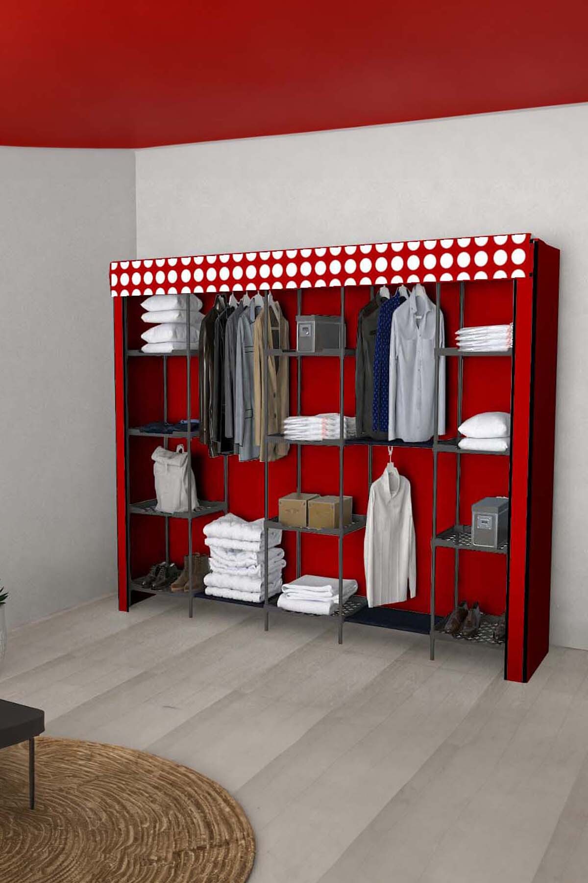 Geniş hacimli tasarımı sayesinde, giysilerinizi ve diğer eşyalarınızı düzenli bir şekilde saklamanız için bolca yer sunar