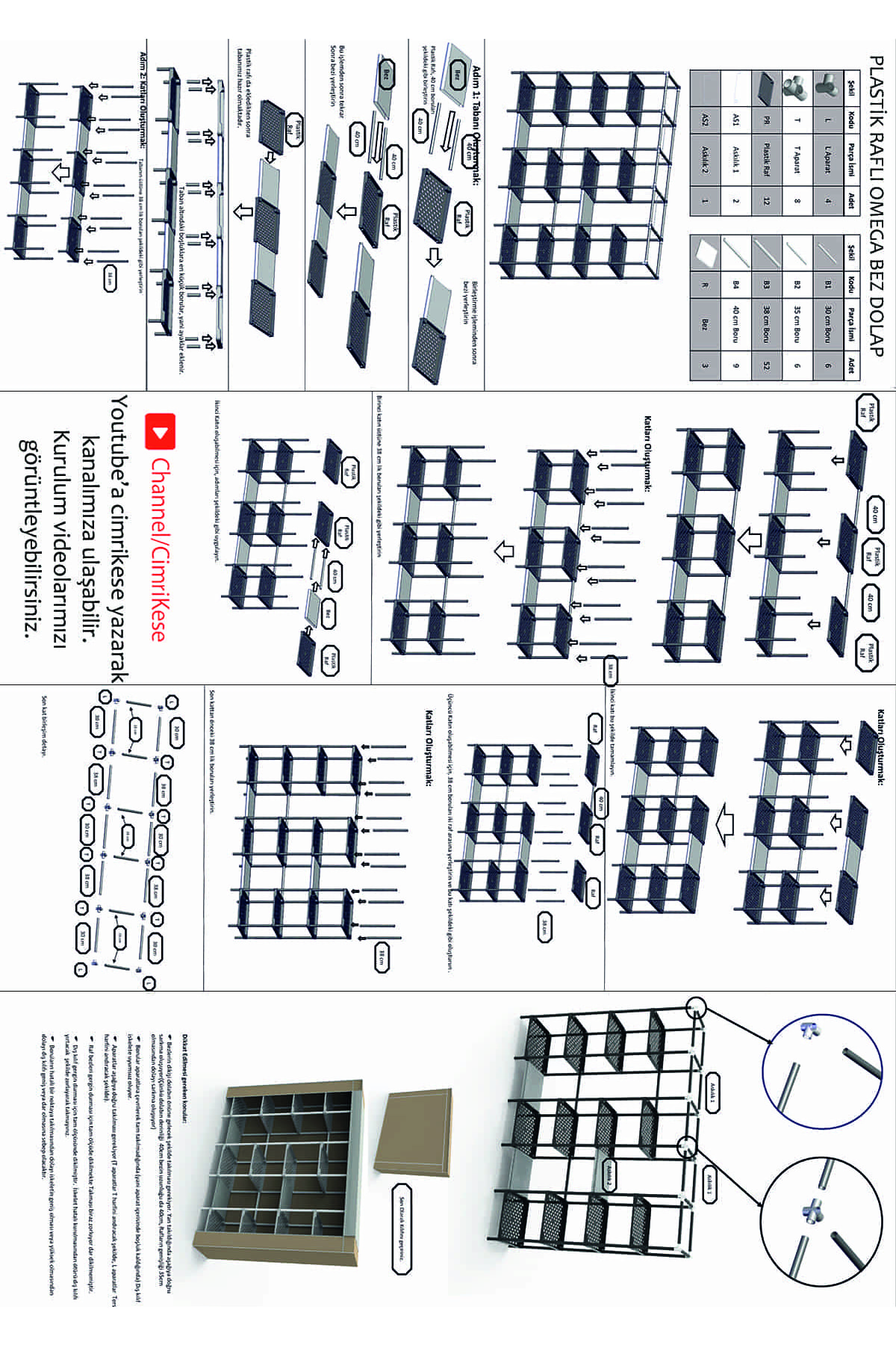 Plastik rafları kolayca çıkarılıp takılabilir, böylece farklı ihtiyaçlara göre raf düzenini kolayca değiştirebilirsiniz