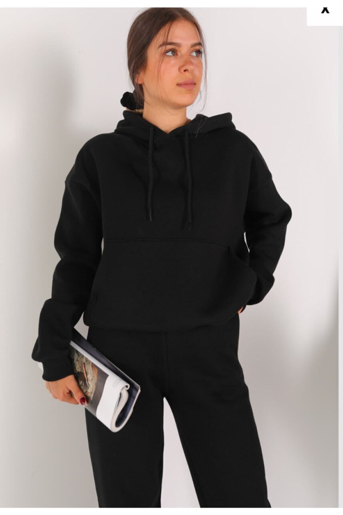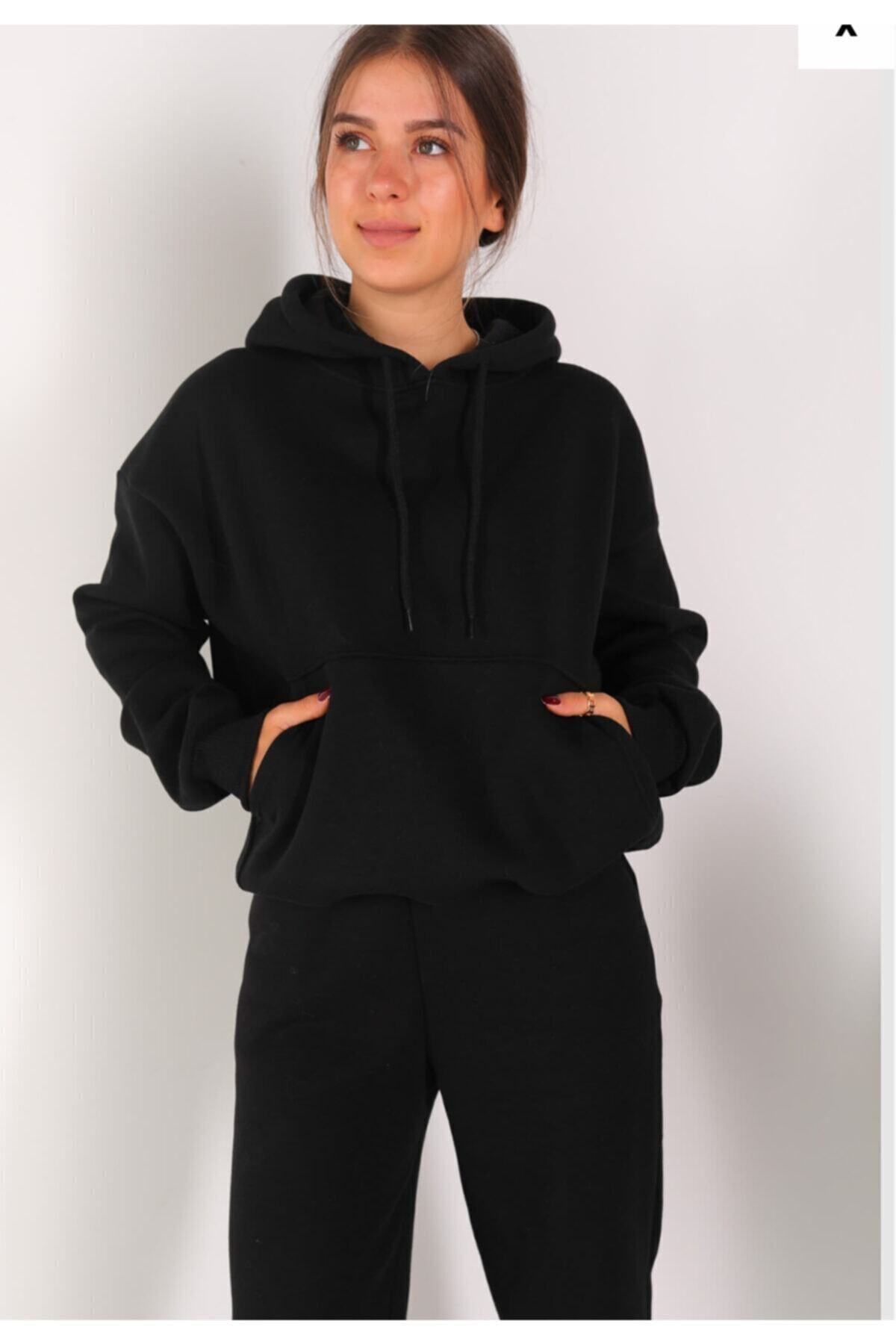 Üst sweatshirt kapüşonlu ve kanguru ceplidir.