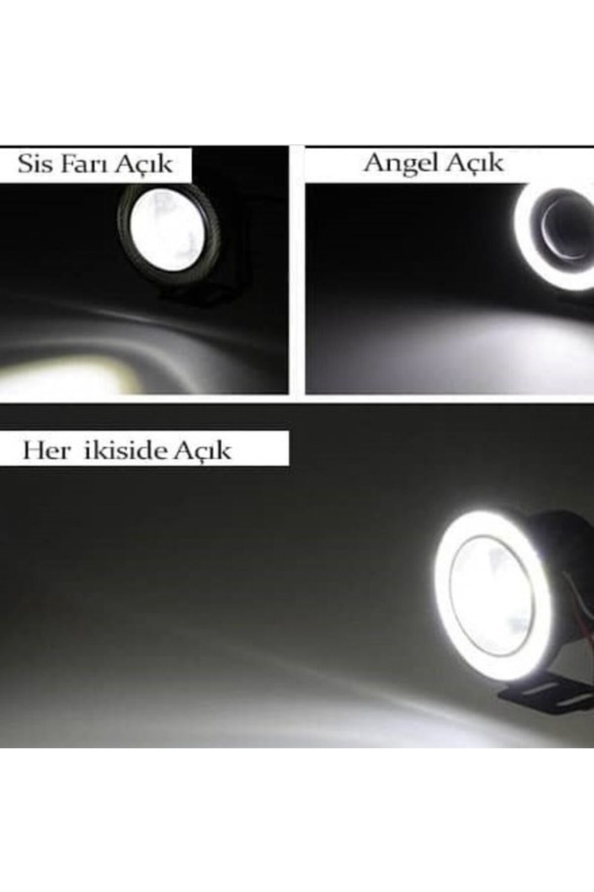 Universal uyumlu tasarımı ile her marka ve model araca kolayca monte edilebilen mercekli angel far