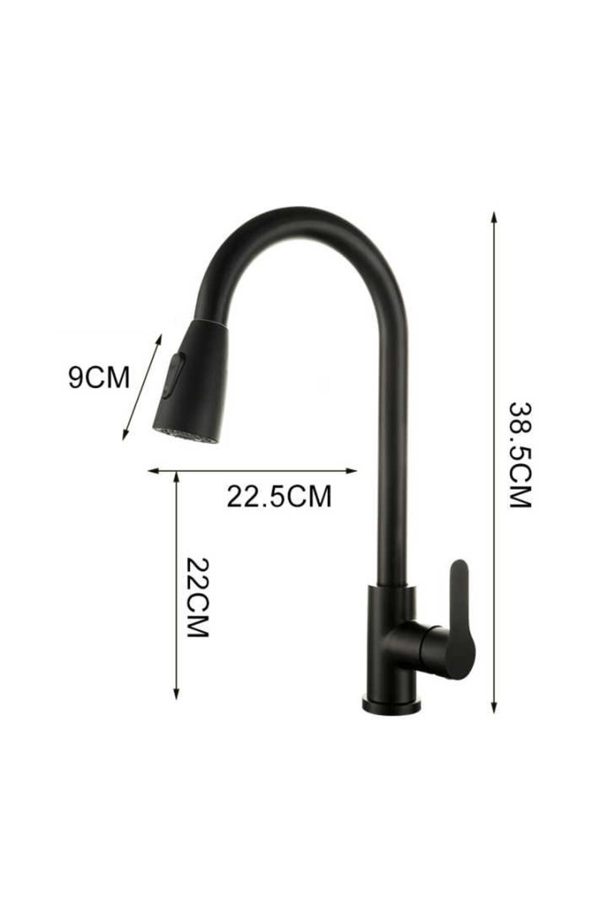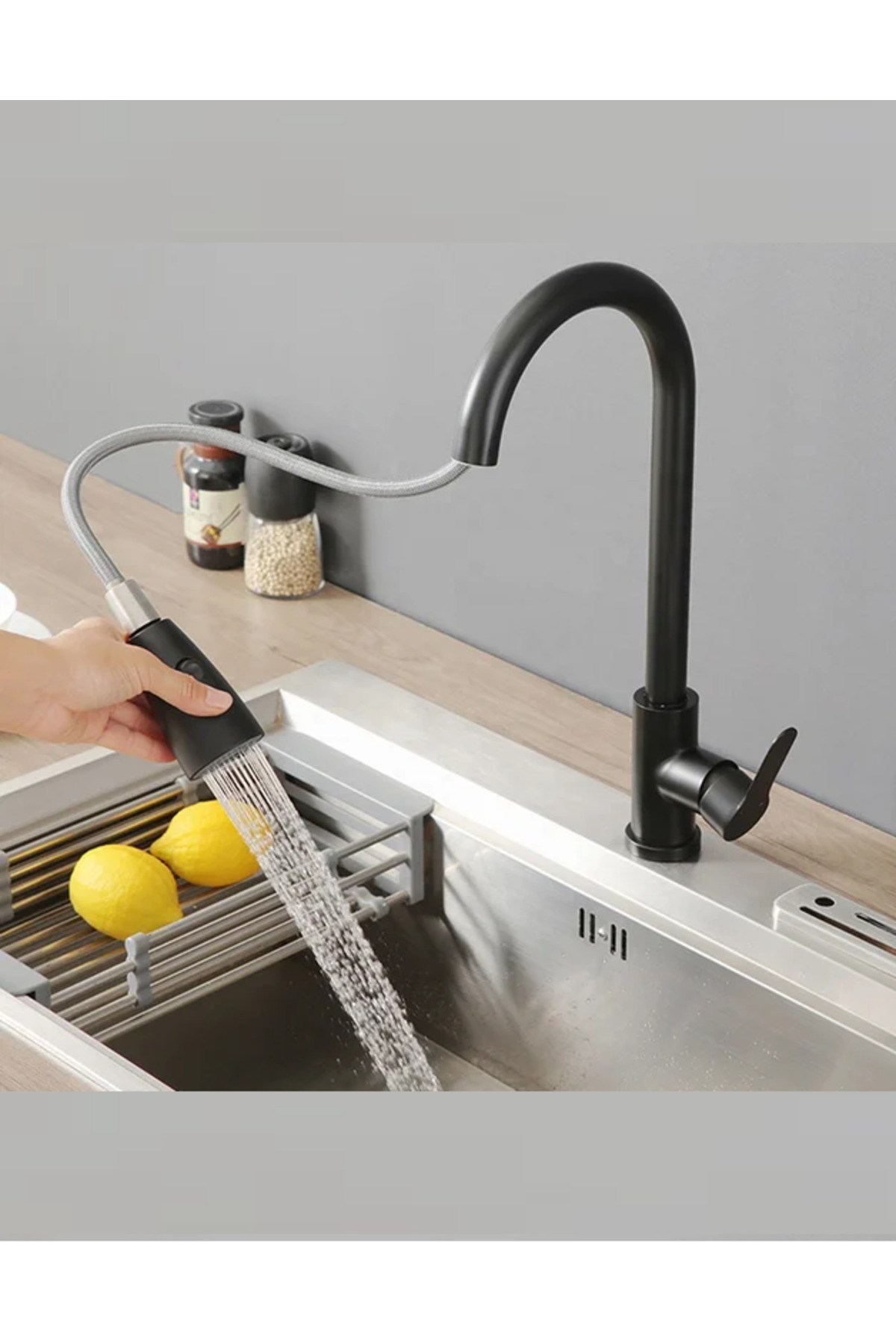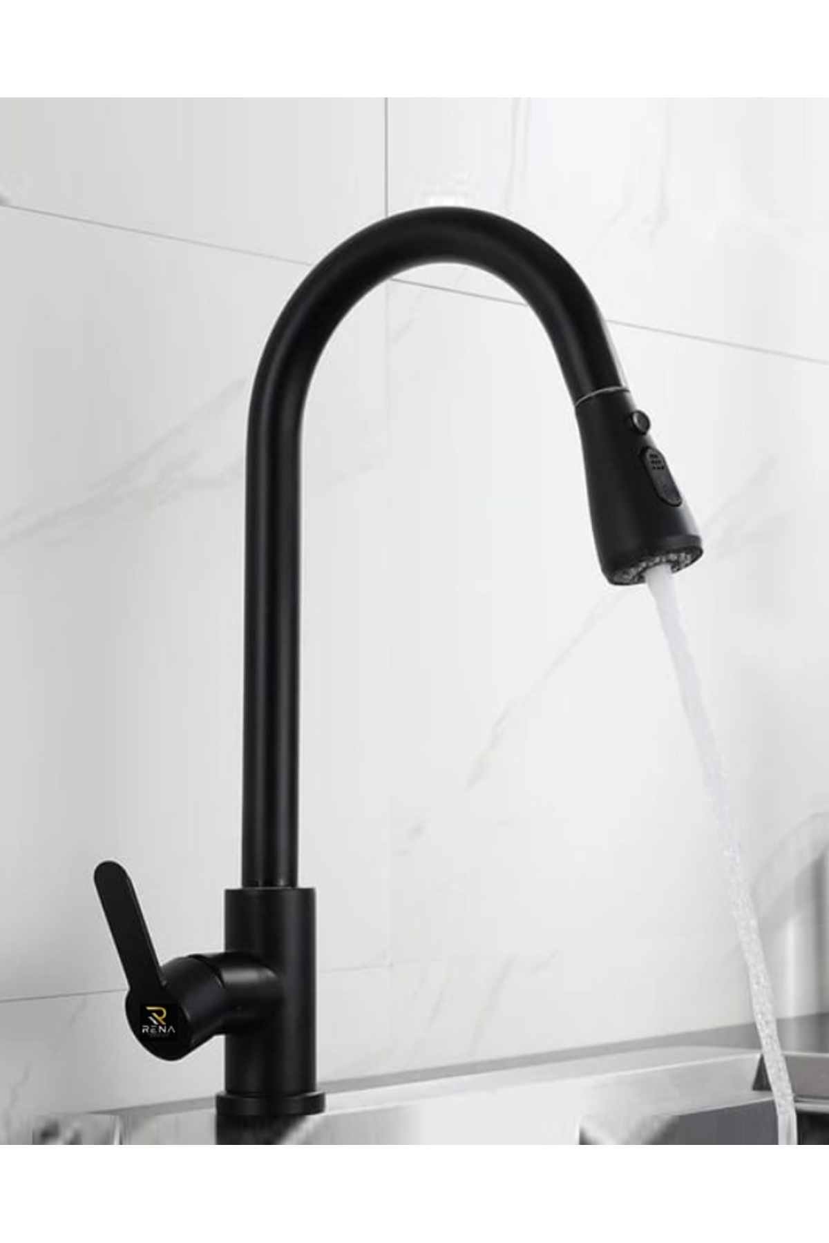 Siyah Spiralli Mutfak Evye Bataryası Çift Modlu Tasaruf Fonksiyonlu Mat Siyah Uzatmalı Eviye Musluk