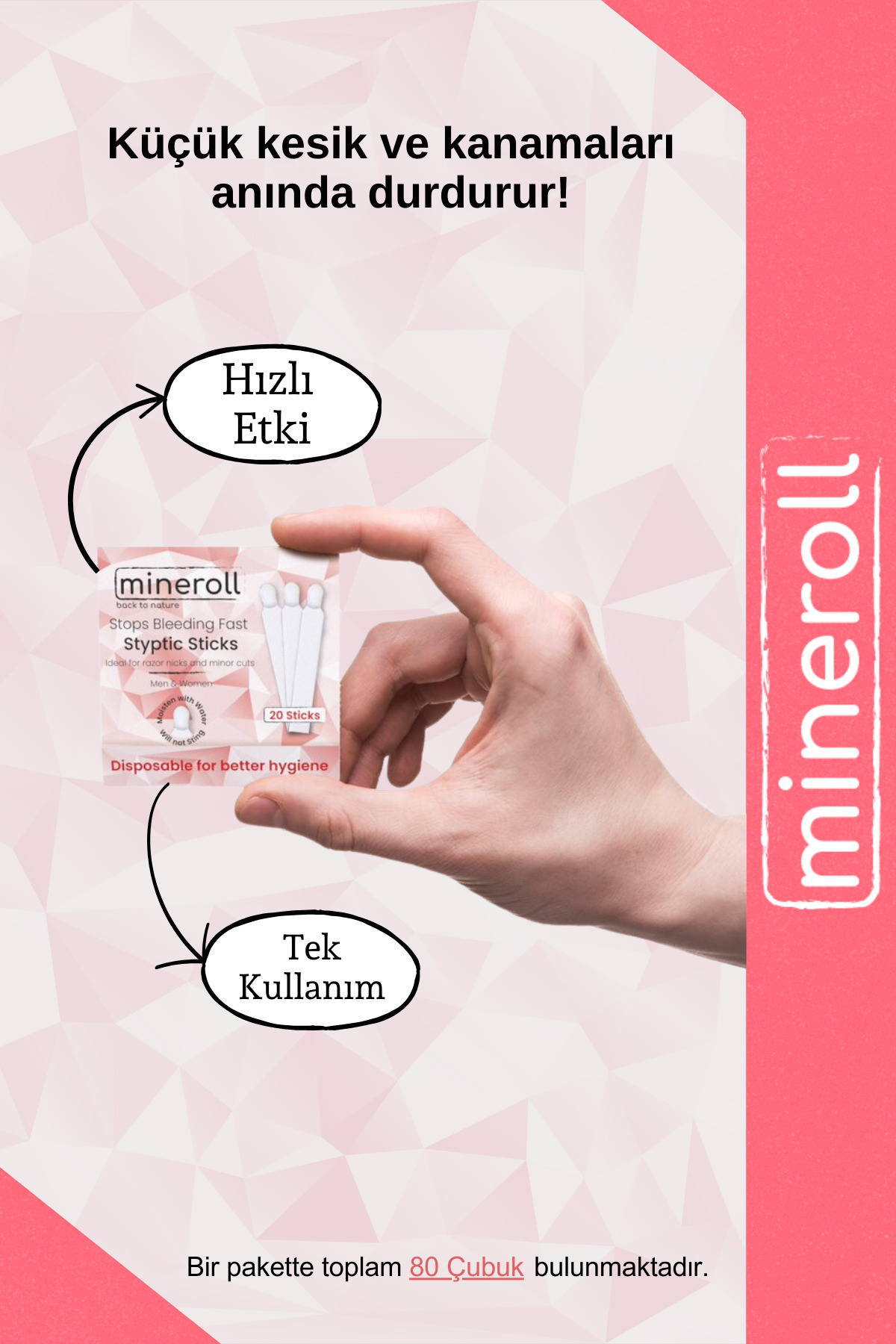 Mineroll Tek Kullanımlık Çubuk Kan Taşı 20'li 4 Paket Ciltte meydana gelen küçük çizik ve kesiklerdeki kanamayı hızlıca durdurur.