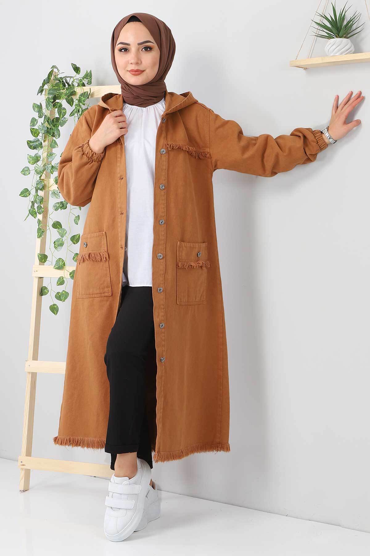 Püsküllü Uzun Kot Kap TSD5527 Haki Özellikleri Kumaş Özelliği : Kot kumaştan üretilmiştir.