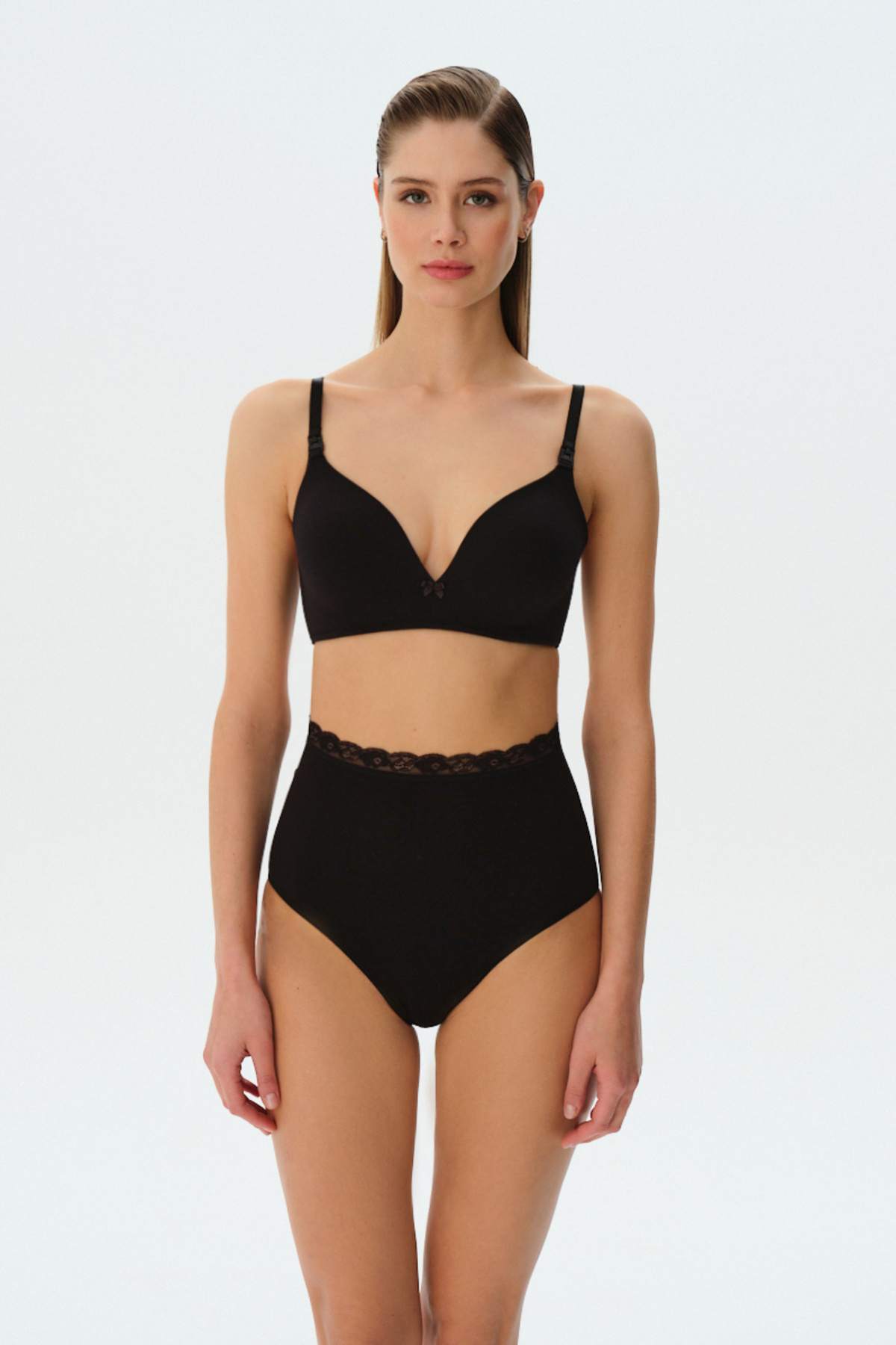 Cotton Emzirme Sütyeni, % 95 pamuklu ve nefes alan kumaşı, balensiz ve desteksiz formuyla emziren anneler için tasarlanmış rahat ve kullanışlı bir üründür. Yumuşak kupları ve ayarlanabilir sabit askıları sayesinde emzirme öncesi ve sonrası göğüslerin farklı dolgunluk seviyelerine kolaylıkla uyum sağlar. Balensiz olmasına rağmen göğsü forma sokar ve göğüslerin yayılmasını engeller. Tek elle rahatça açılıp kapanan klipsi sayesinde kolay bir emzirme deneyimi sunar. Beyaz, siyah ve ten rengi olmak üzere 3 farklı renk seçeneği mevcuttur. Ana Kumaş:%100 Pamuk