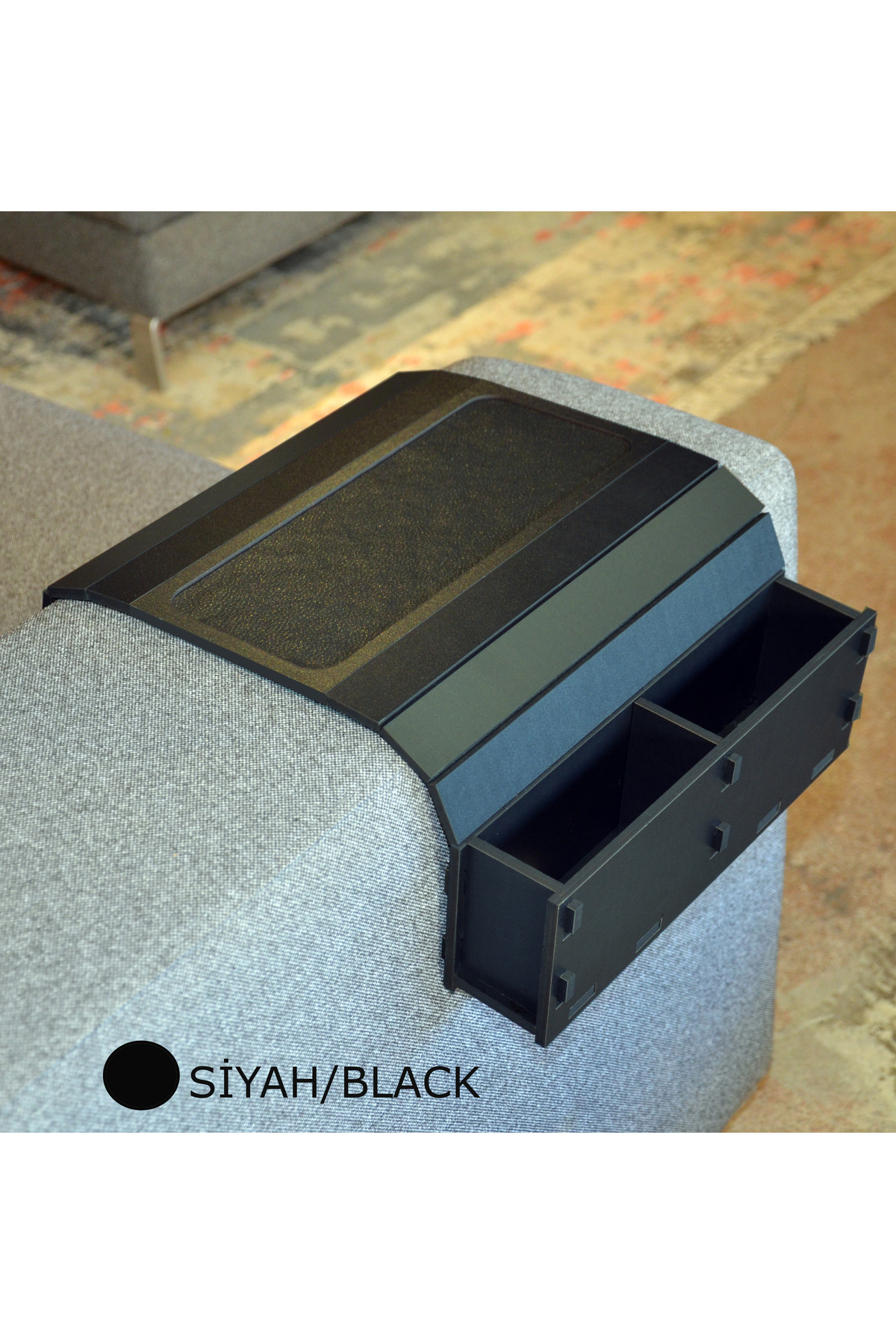 KOLTUK BAŞI YA DA KOLTUK ÜZERİNE KOLAYCA YERLEŞTİRİLİP BARDAK VE TABAK KOYULABİLİR, PORTATİF 2 BÖLMELİ HAZNESİYLE KUMANDA, TELEFON, GAZETE