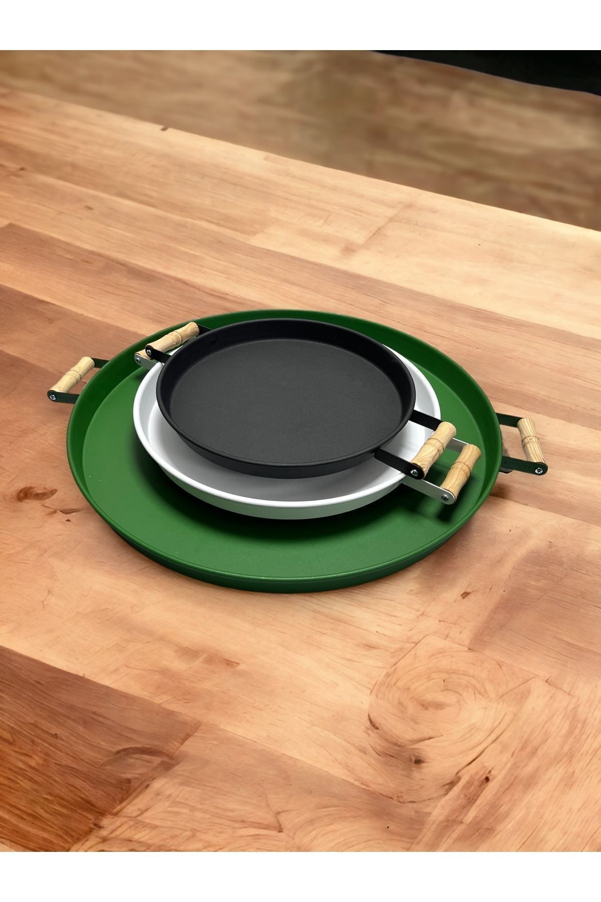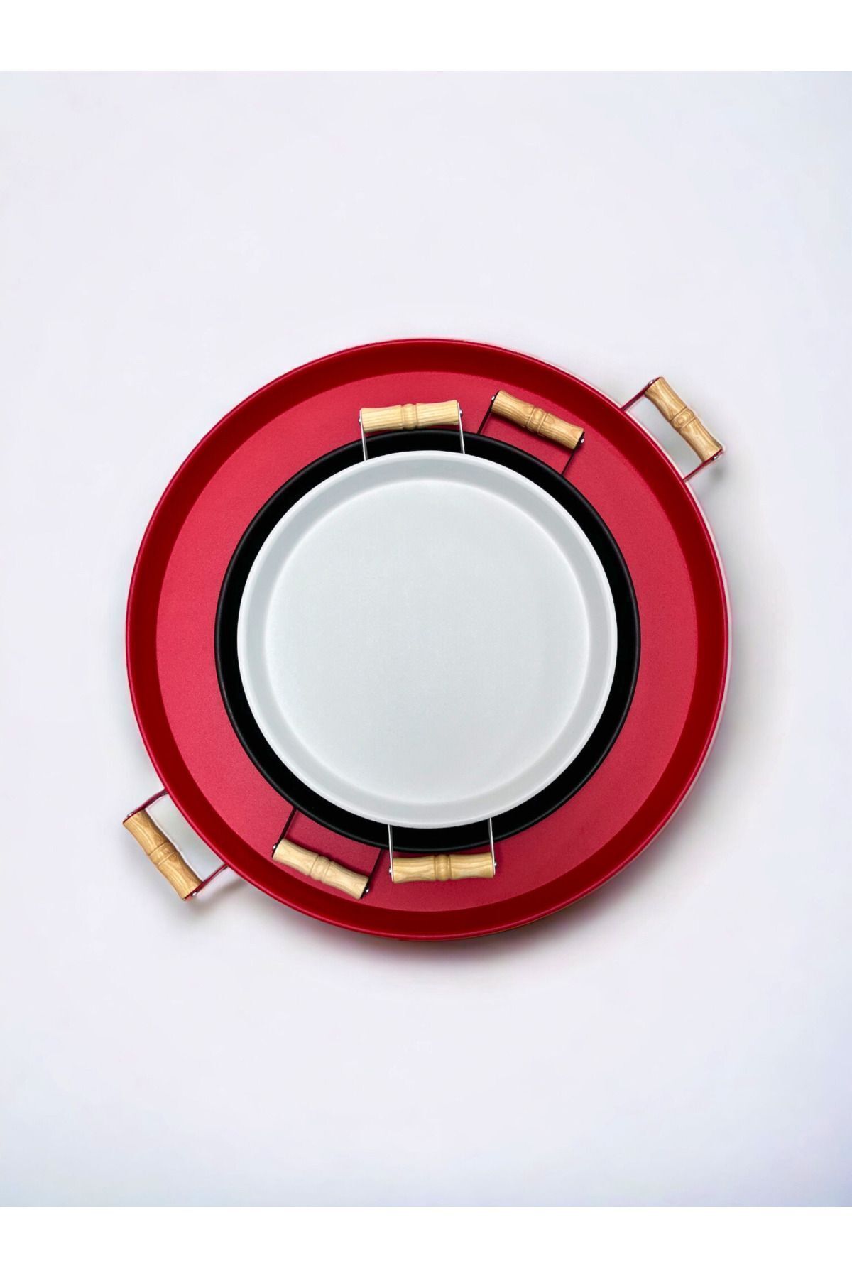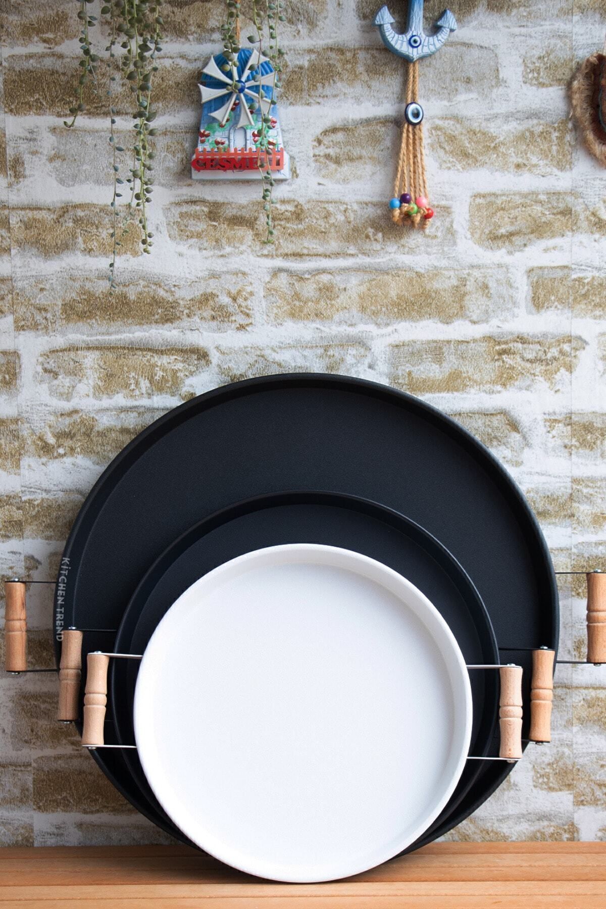 - Üç farklı boyutta tepsiden oluşan set