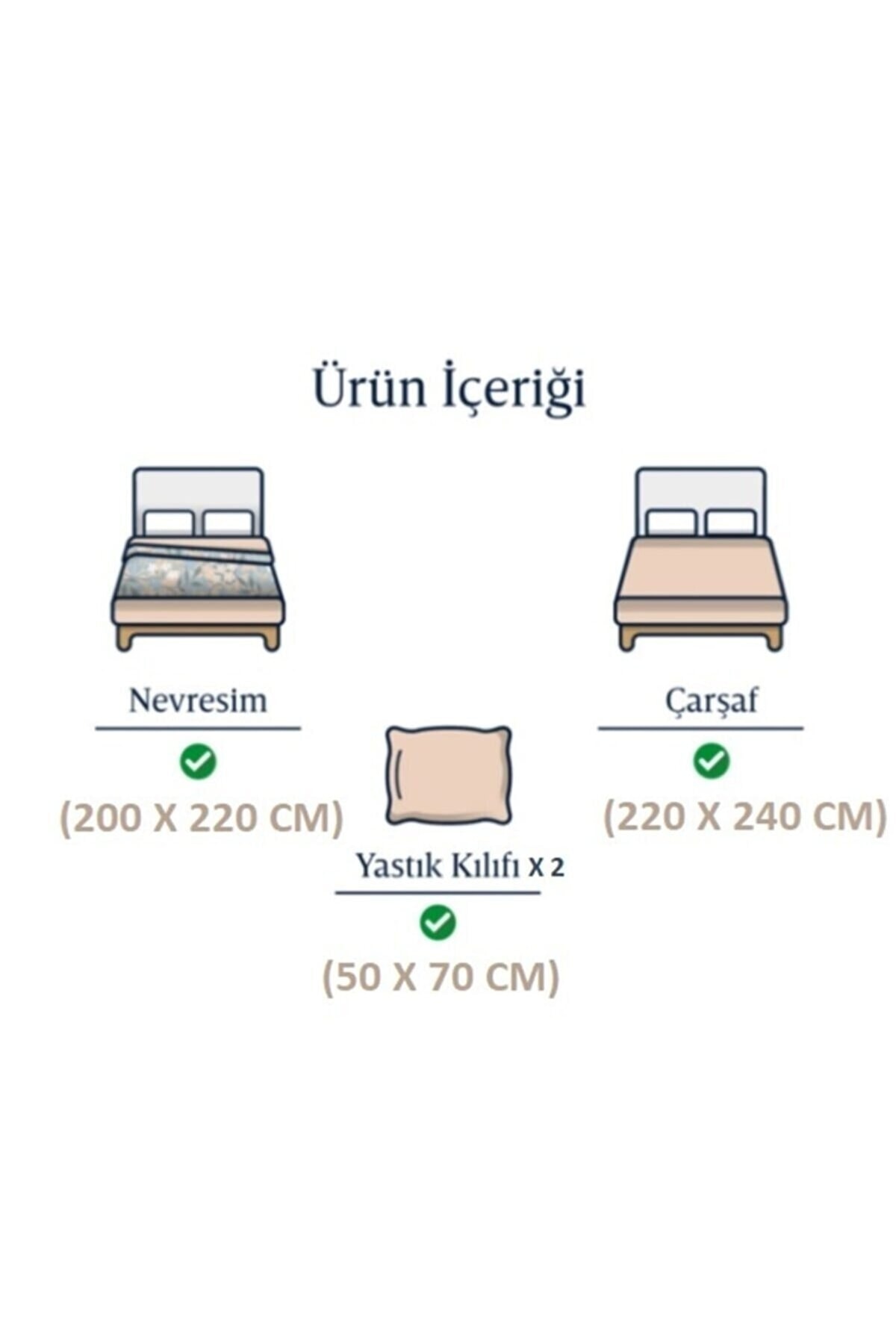 Set, 1 Nevresim, 1 Çarşaf ve 2 Yastık Kılıfı ile Toplam 4 Parçadan Oluşmaktadır.