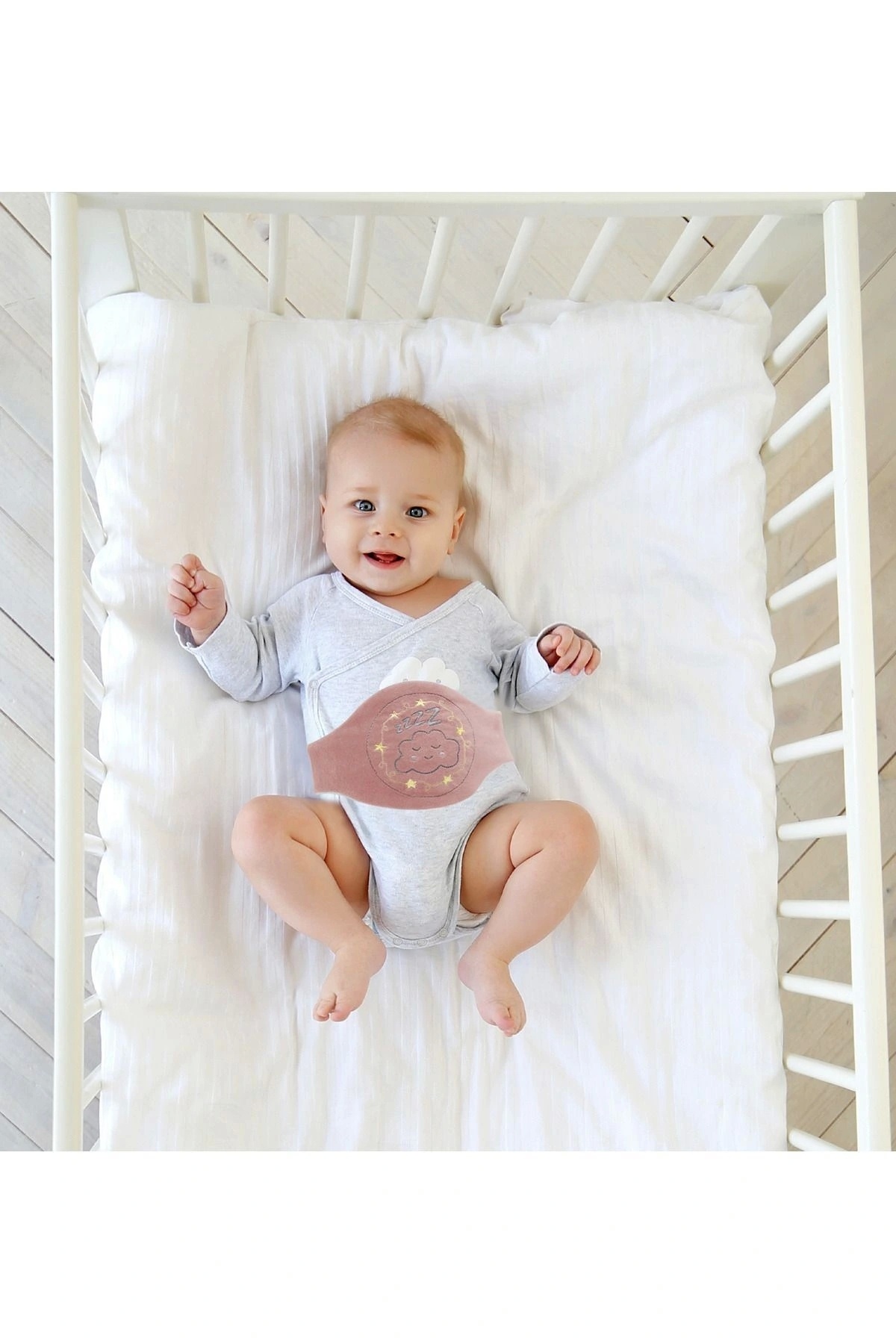 Isıtılmış kiraz çekirdekli keseyi cebe koyup bebeğin karnına gelecek şekilde bağlayın.