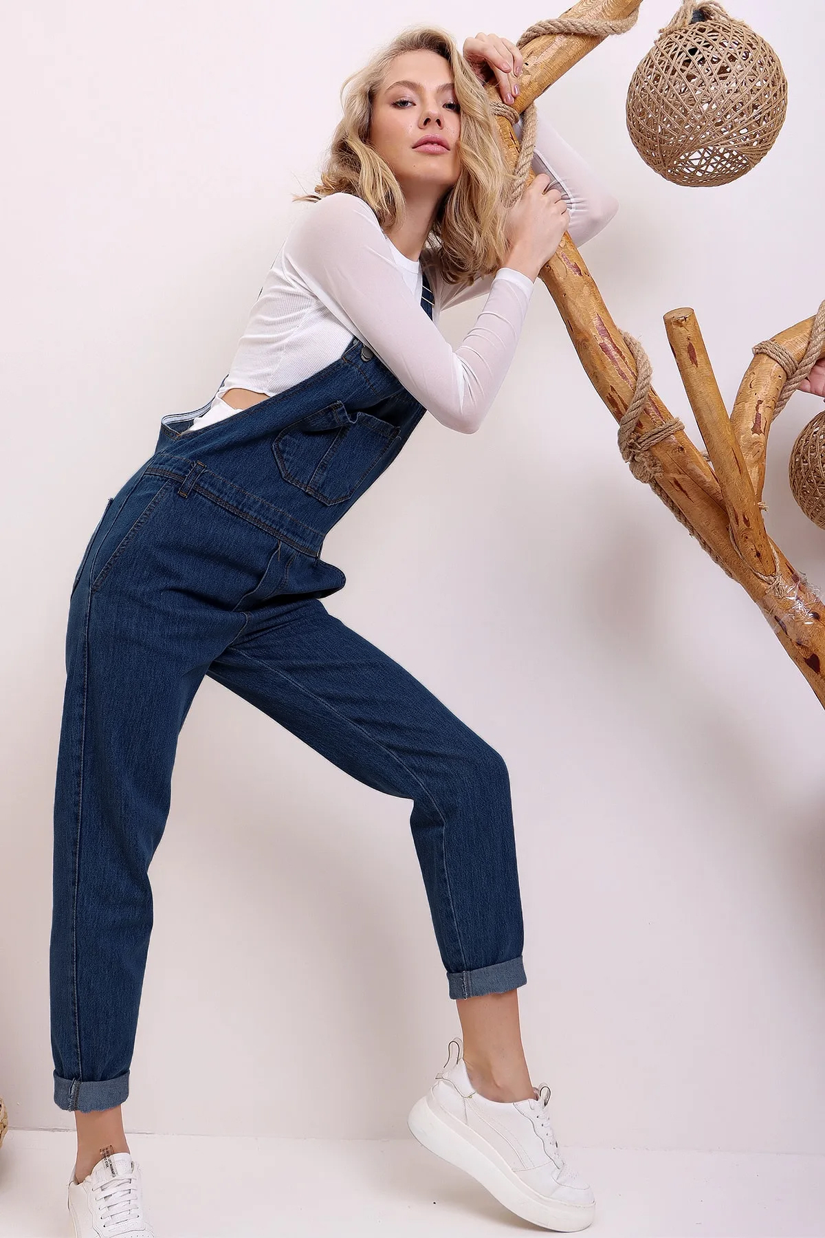 Düğme Detaylı, %100 Pamuk Kumaşı, Ayarlanabilir Askılı Şık Modeli İle Sıcak Yaz Aylarında Terci Edeceğiniz Sandalet Ve Hasır Şapkalarınızla Kombinleyeceğiniz Önü Düğmeli Dört Cepli Ayarlanabilir Askılı Bol Kesim Denim Salopet Tulum Sizlerle!!