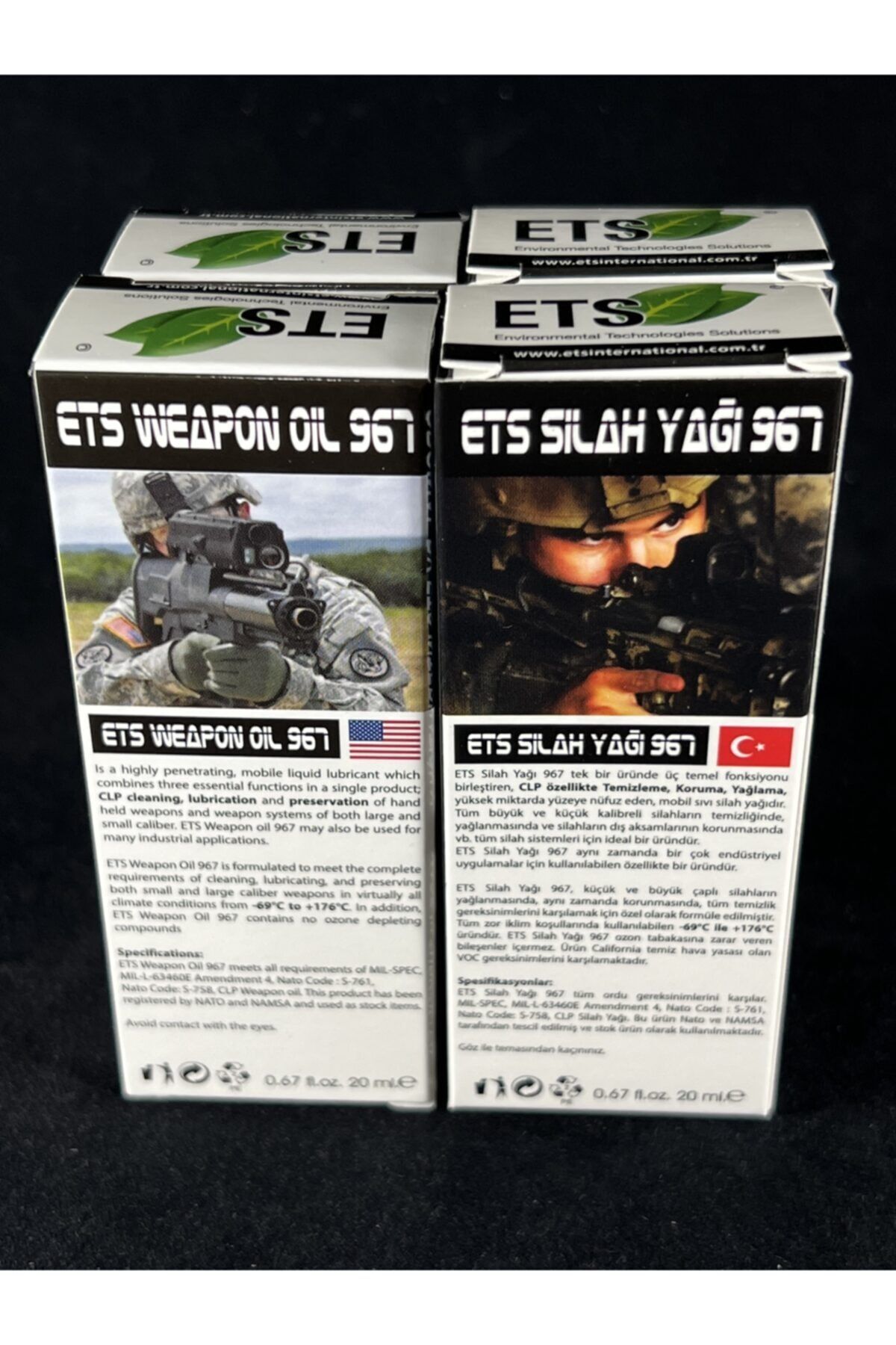 SİLAH TEMİZLEME : ETS Silah Yağı 967 özel katkılar içeren bir profesyonel yağdır, tüm metal yüzeylere, zor ulaşılabilen bölgelere, yüzeylere nüfuz eder ve kirlenmeyi kurumlaşmayı çıkartır.