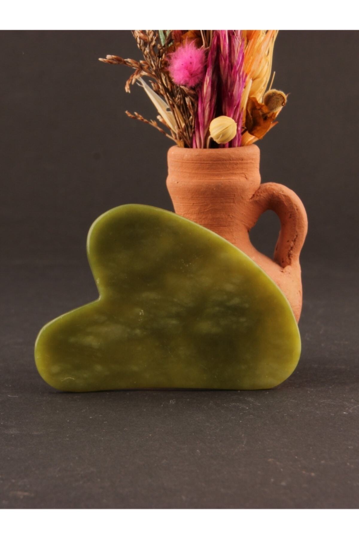 Soğukluk Etkisi: Bu soğukluk, yüzdeki şişlikleri azaltabilir, gözenekleri sıkılaştırabilir ve cildi sıkılaştırabilir. Rahatlatıcı Etki: Soğuk Gua Sha taşının cilt üzerinde kullanılması, cildinizi rahatlatıcı bir etki sağlayabilir. Özellikle sabahları kullanıldığında, yorgun ve şişkin cildi canlandırmaya yardımcı olabilir. Daha Etkili Sonuçlar:Soğuk Gua Sha taşının cilt üzerinde kullanılması, ürünlerin daha iyi emilmesine yardımcı olabilir. Cilt bakım ürünlerinizi (örneğin, serum veya nemlendirici) uyguladıktan sonra soğuk Gua Sha taşını kullanmak, bu ürünlerin cilde daha derinlemesine nüfuz etmesini sağlayabilir. Yeşim taşı:Odaklanmayı arttırır, nazara iyi gelir ve kişiyi korku ve endişeden korur.