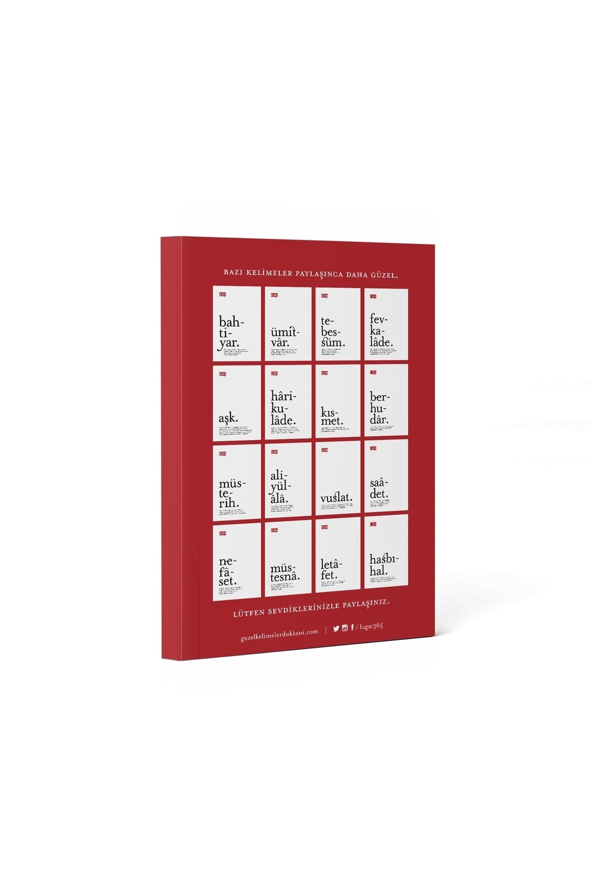 mat bristole baskılı 16 güzel kelimeden oluşan kartpostal seti.