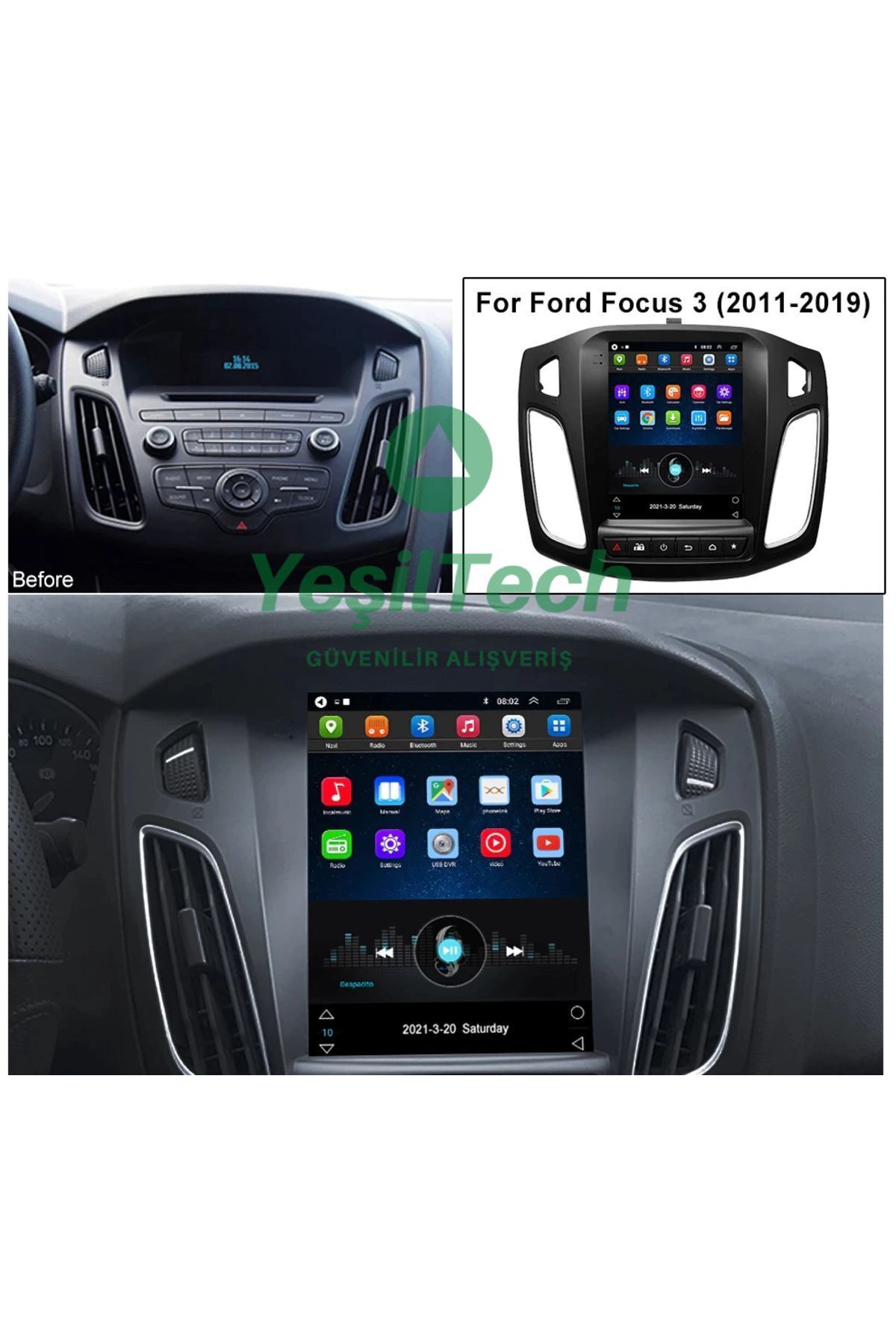Ford Focus 3-4 Tesla Ekran Android Multimedya Ips Ekran 4gb Ram 64gb Hafıza Kamera Hediyeli