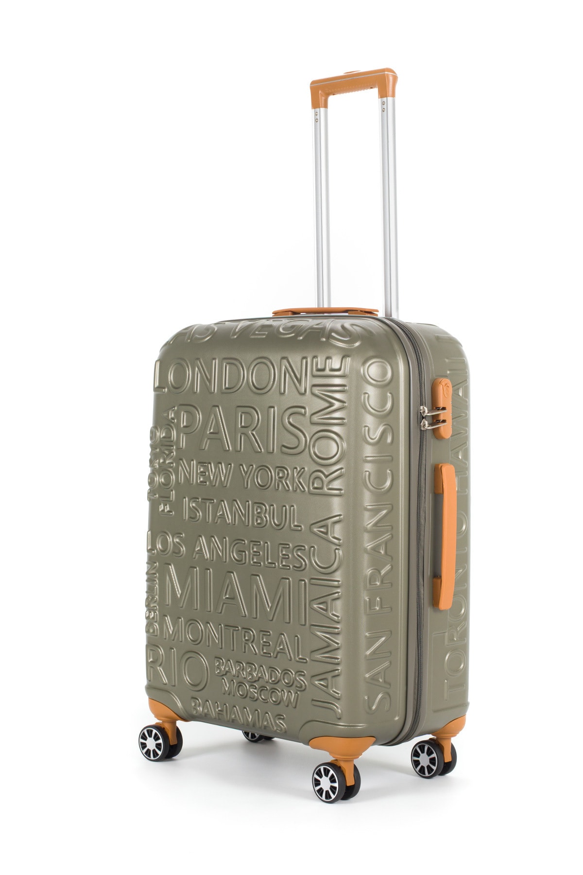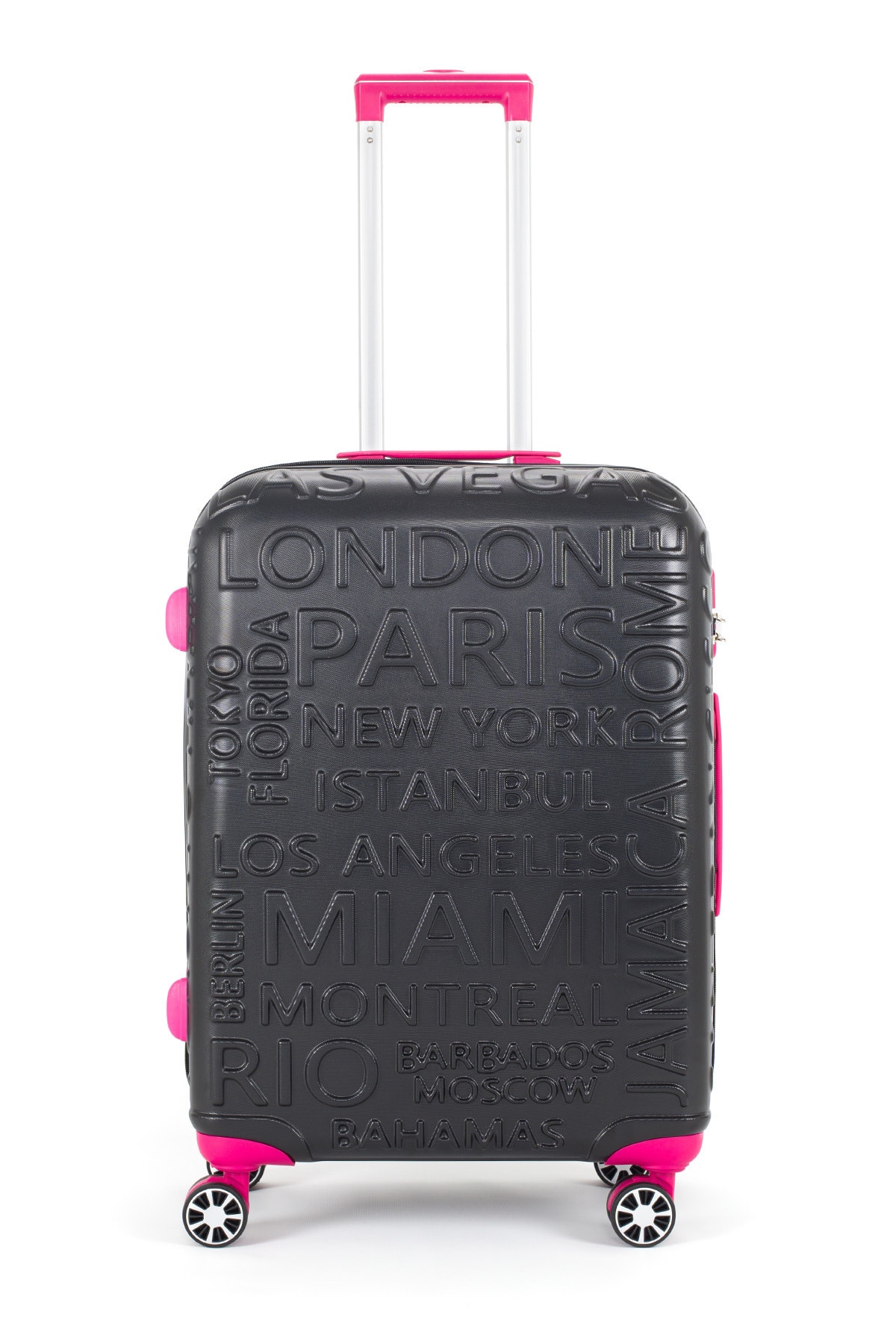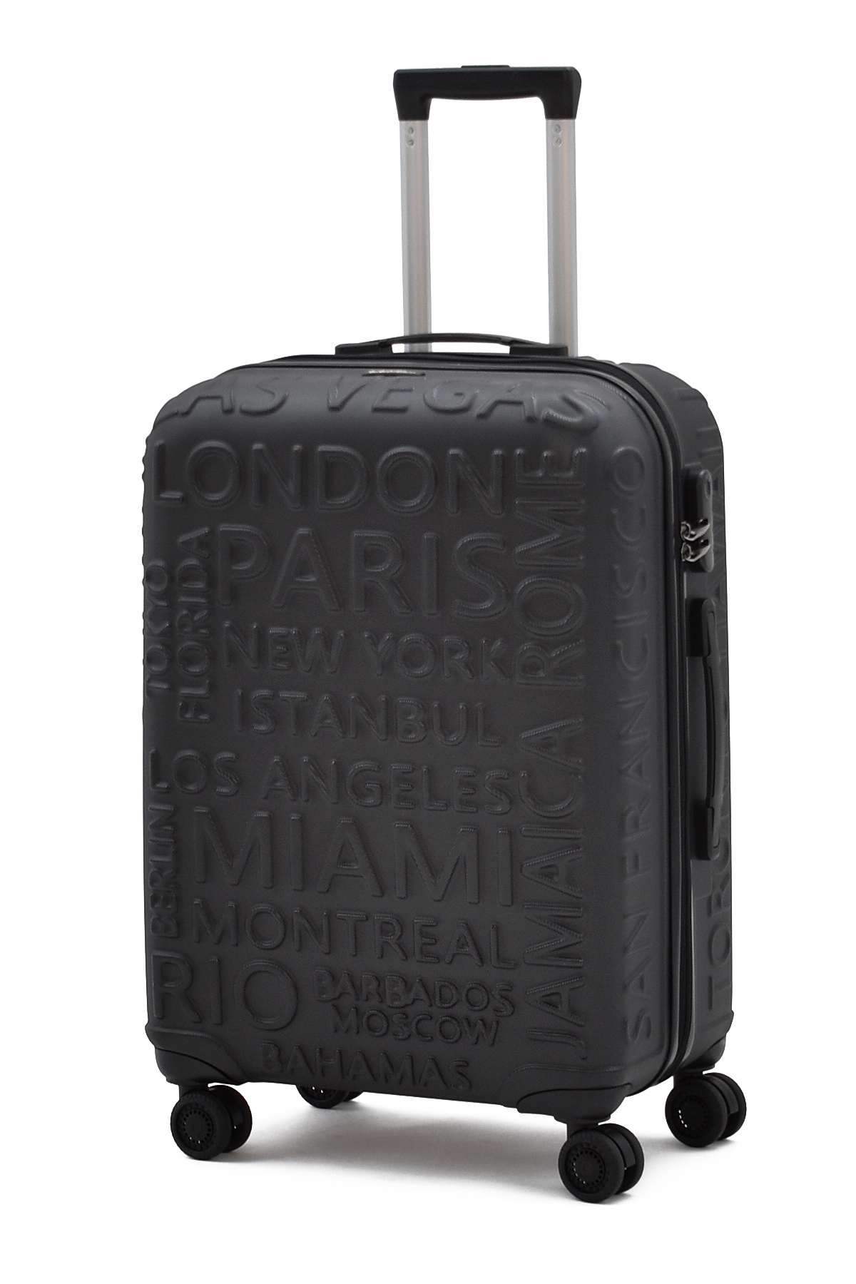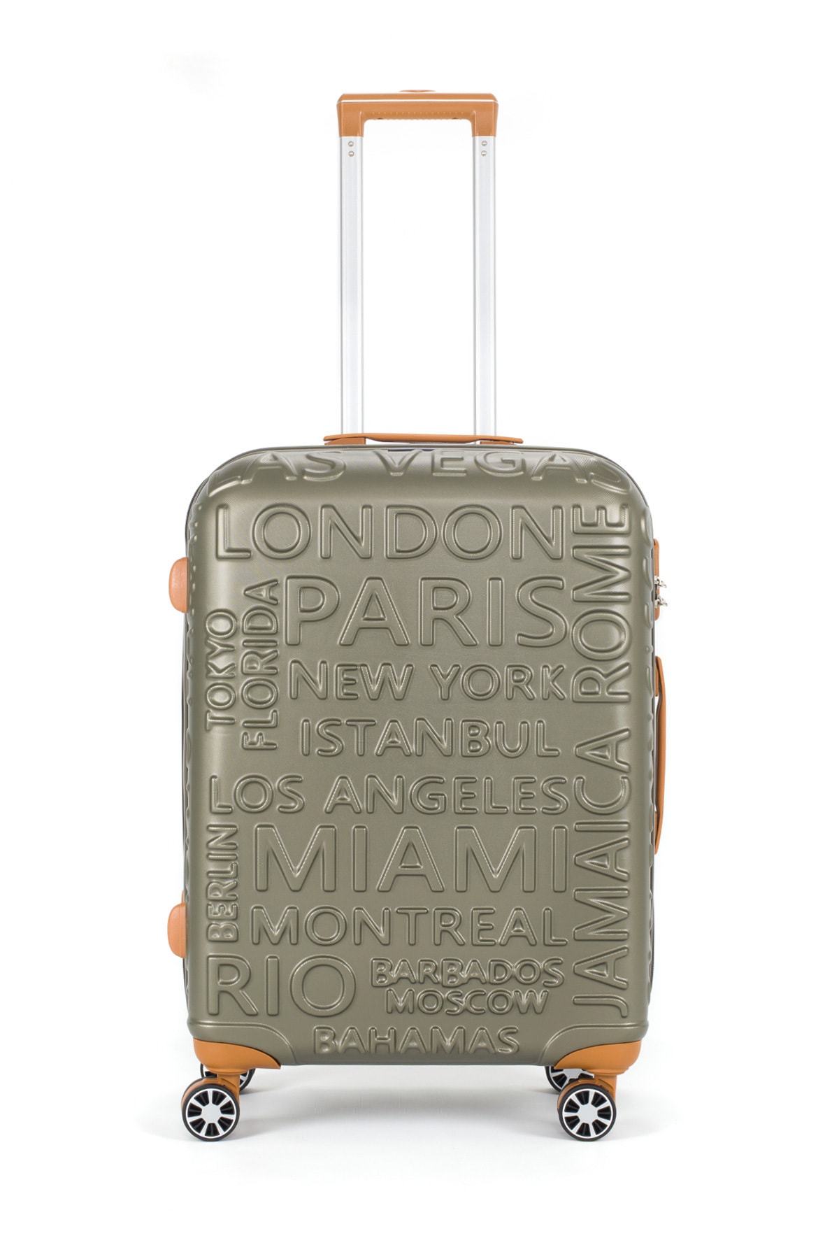 Ürün Ölçüleri: Orta: 43 cm x 65 cm x 25 cm / 3,4 Kg Büyük, zırhlı tekerlekler çift ve döndürülebilir. Kasanın yanında TSA standardında şifreli bir kilit bulacaksınız. Zarif iç mekan, giysileri tutmak için kayışlar ve ana bölmeler için bir ağ ayırıcı içerir. Tekerleklerin model ve renkleri kaliteden ödün verilmeden değişiklik gösterebilir. Ağırlığı dengeleyip taşımayı kolaylaştıran, kauçuk-silikon malzemeden üretilmiş 360 derece dönebilen dört adet çift döner tekerlek