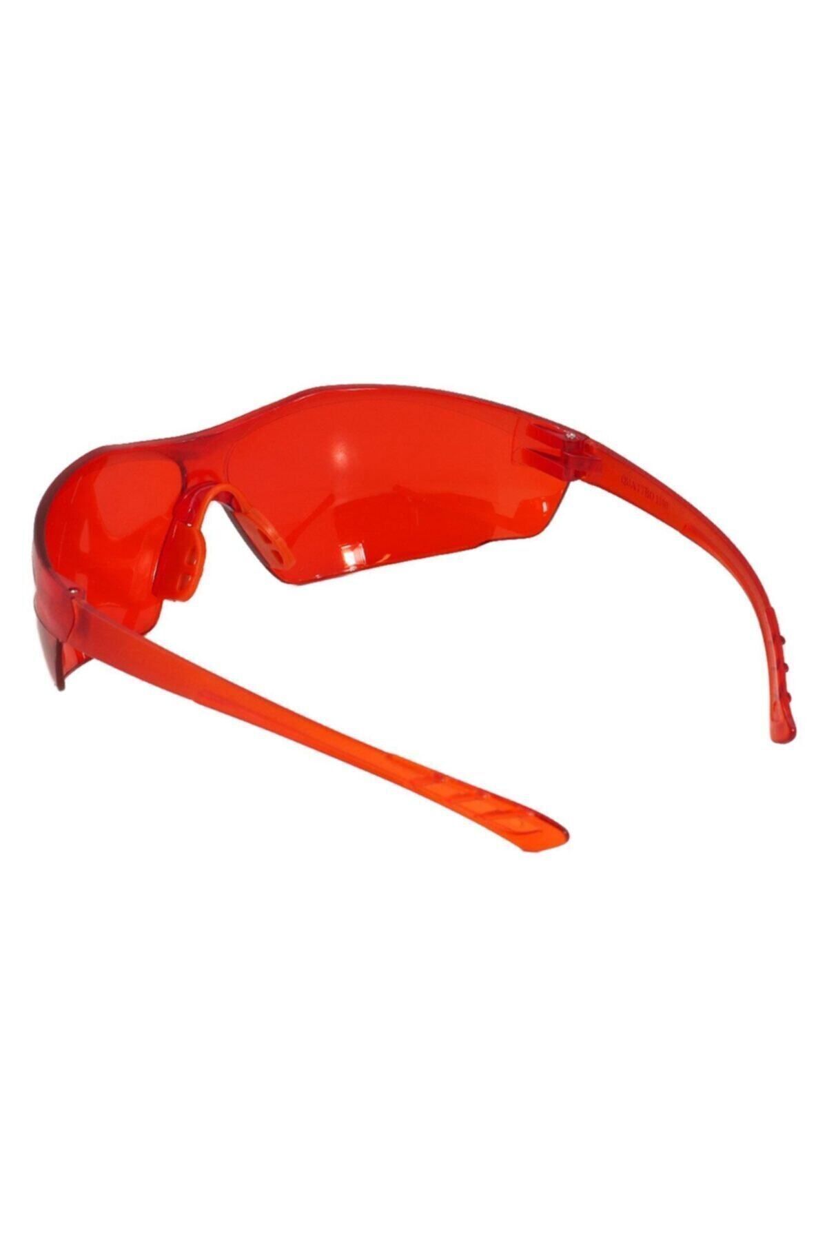 Estetik ve güvenlik standartlarına uygun olarak tasarlanmış, kırmızı renkli güvenlik gözlüğü